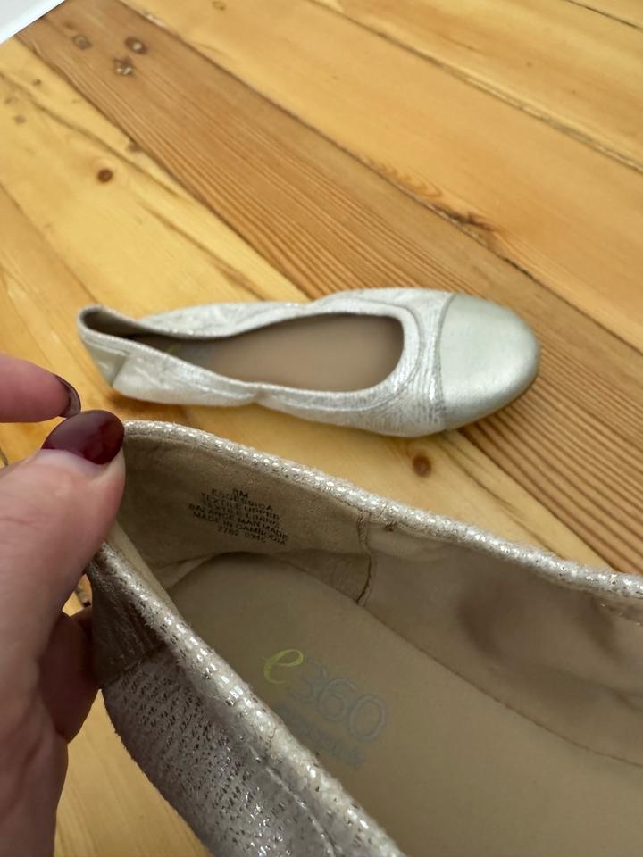 Серебристые балетки. Размер 38. Нестирающаяся подошва. Привезены из США. Артикул: 422403