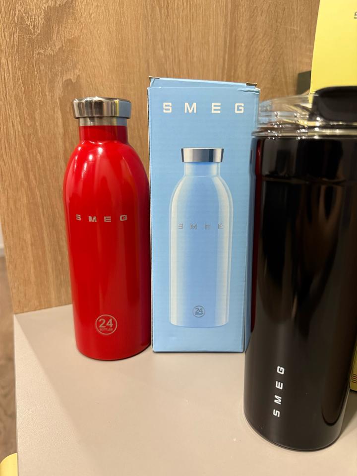 SMEG термобутылка в красном цвете , объем 500 мл. нержавеющая сталь. Новая в коробка. Также в наличии термокружки 550 мл. в черном и розовом цвете Артикул: 422937