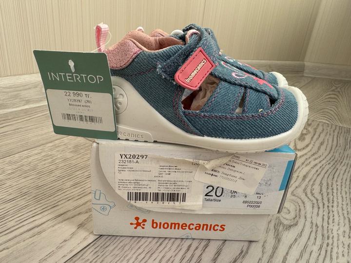 Размер 20 на стопу 12 см. Детские сандалии Biomecanics для девочек в синем цвете. Верх и подкладка обуви выполнены из текстиля. Подошва изготовлена из термопластичной резины. Она не скользит на любой поверхности и полностью поглощает удар при активном движении. Анатомическая стелька разработана специалистами для правильного формирования детской стопы. Протекторы на передней и задней части обуви отлично защищают ноги ребенка. Страна производитель Испания. Артикул: 423056