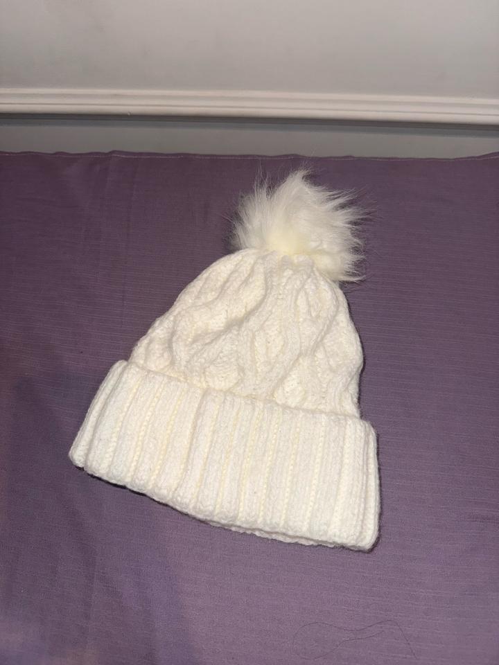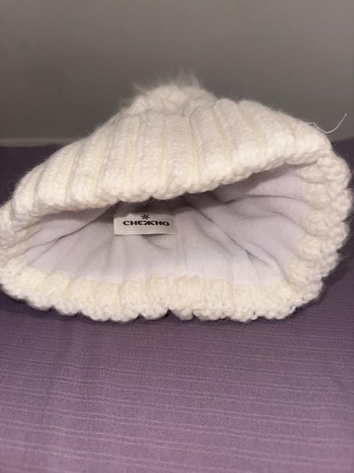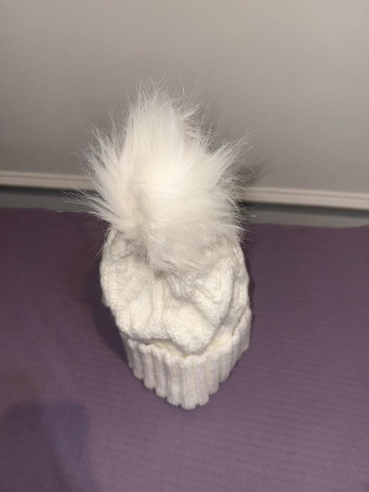 Белая шапка для холодной погоды. С бубончиком. Милая шапочка Артикул: 423071