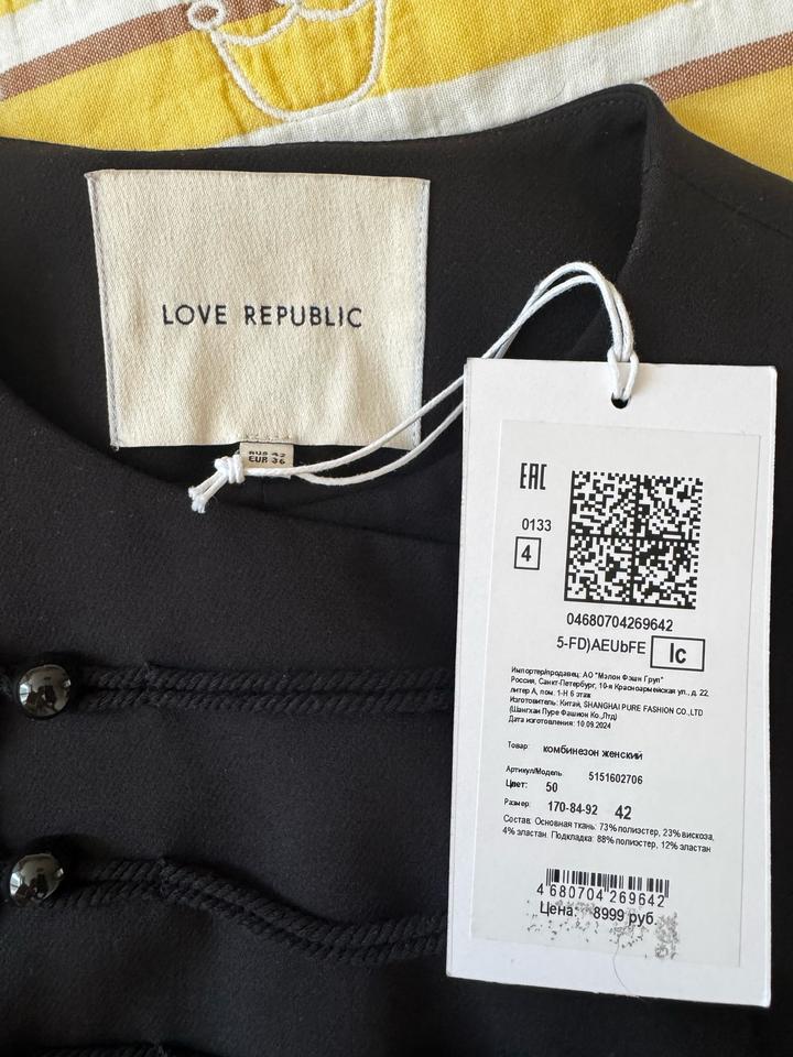 Комбинезон Бренда Love Republic. Размер 42 (xs). Цвет черный. Новый. Продаю, потому-что приобретала, когда была на 7кг худее. Так и не посчастливилось его никуда надеть. Но это была любовь в первого взгляда. Артикул: 423079