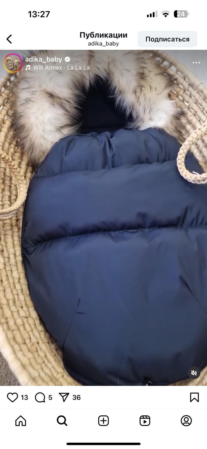 Конверт детский, синего цвета, теплый, изнутри флис, с меховым воротом, используется как второй слой после комбеза для прогулок Артикул: 423168
