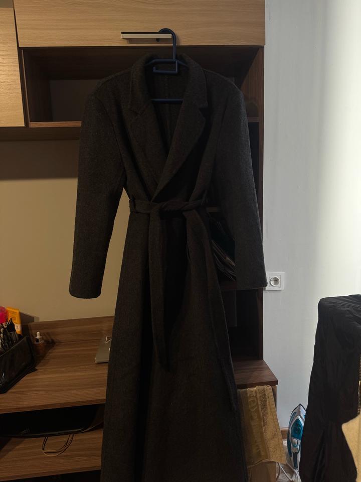 Пальто темно серого цвета из шерсти, покупала в пассаже за 85000, носила где-то 2-3 раза, состояние идеальное, размер стандарт Артикул: 423213