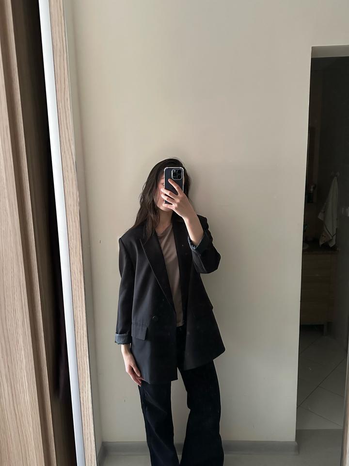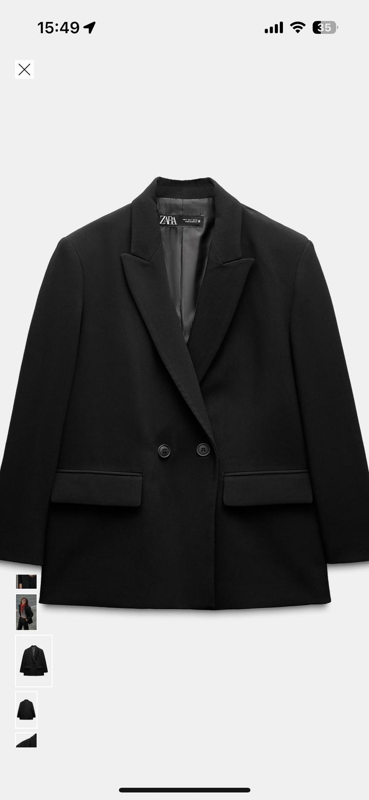 Двубортный черный блейзер Zara, размер S, оверсайз. Отличная база, подходит к любому образу Артикул: 423528