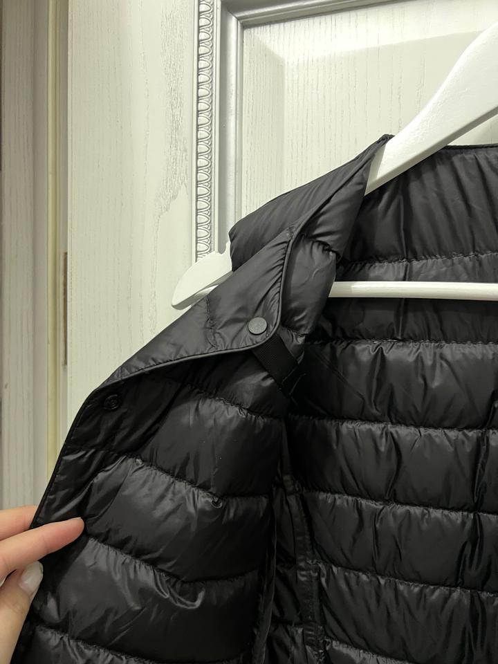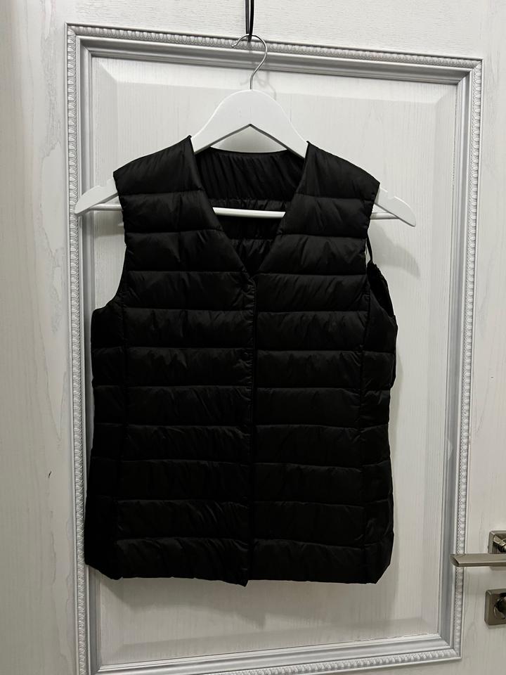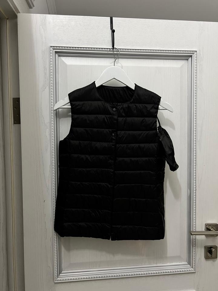 новая безрукавка - жилетка под Uniqlo 1в1 есть мешок для хранение (в случае путешествия) легкий пух есть заклепки, чтобы загнуть воротник размер XS/S Артикул: 424095