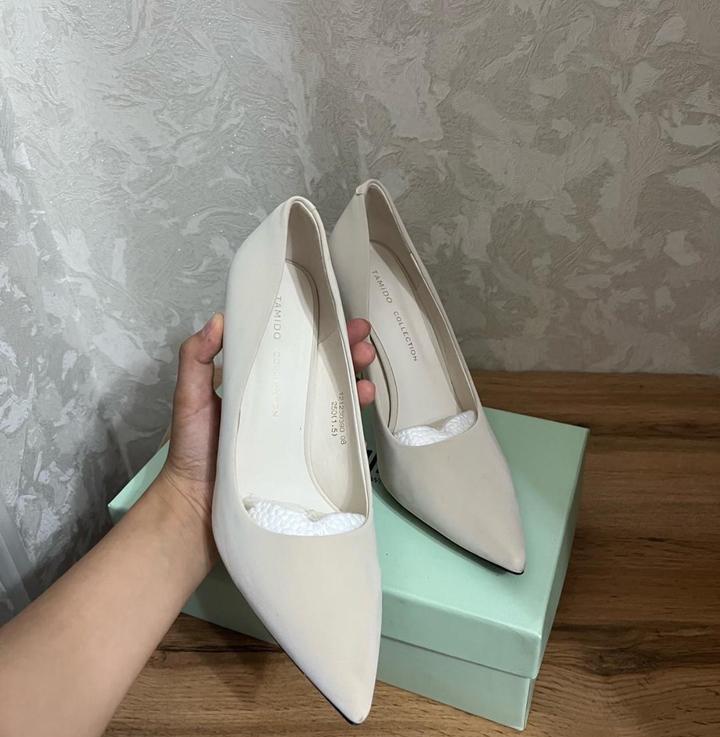 Элегантные туфли-лодочки Josiny, размер 39 Классические туфли в универсальном молочно-бежевом оттенке с аккуратным золотым каблуком. Покупались на свадьбу, надевались всего 2 раза. ✔️ Подходят как для офиса, так и для мероприятий ✔️ Сдержанный дизайн — уместны с костюмом, платьем, юбкой ✔️ Каблук устойчивый, форма удобная ✔️ Отличное состояние, без дефектов В комплекте: коробка и пакет Размер: 39 Цвет: айвори / молочный (как на фото) Смотрятся дорого и аккуратно, визуально вытягивают силуэт Артикул: 424182