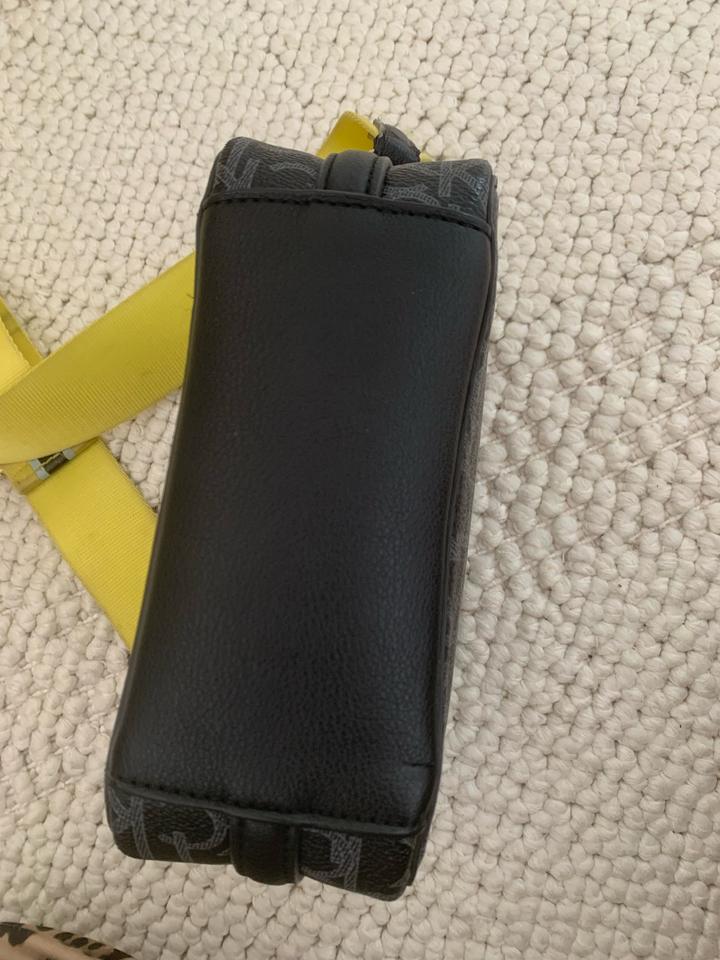 Сумка Calvin Klein Medium Crossbody с монограммой «CK». Желтый ремешок, регулируется по длине, не снимается. Внутри один кармашек. Материал: сочетание 51% переработанного полиэстера и 49% полиуретана. Артикул: 424209