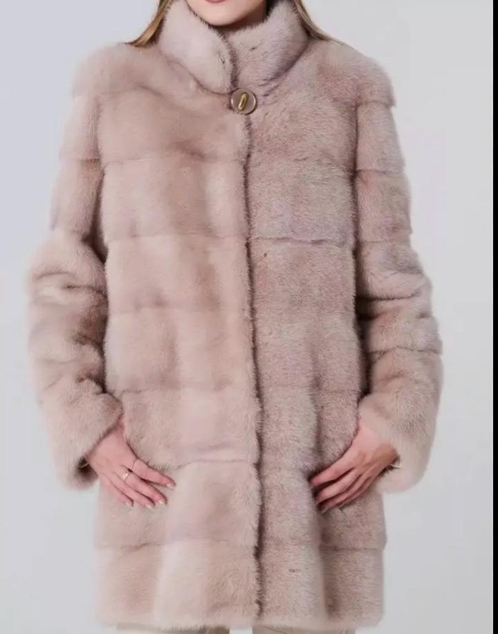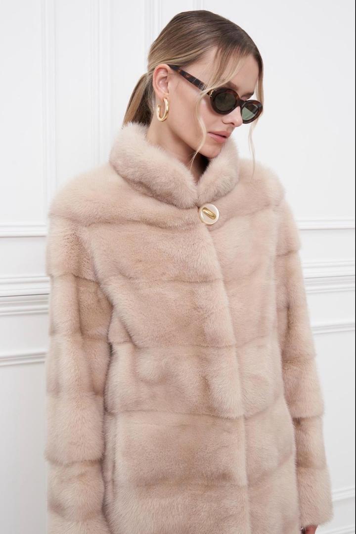 Натуральная норковая шуба цвет пудра Артикул: 424551