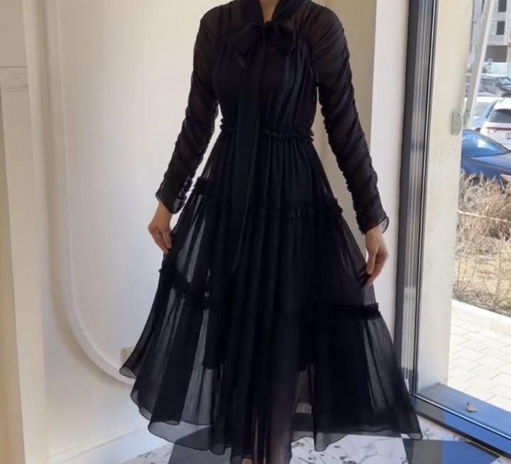 Платье из сжатого шифона, размер М и на С , резинка на талии тянется хорошо , длина ниже колена, при росте 165, кочественный пошив от дизанера Алии Туман Артикул: 424955