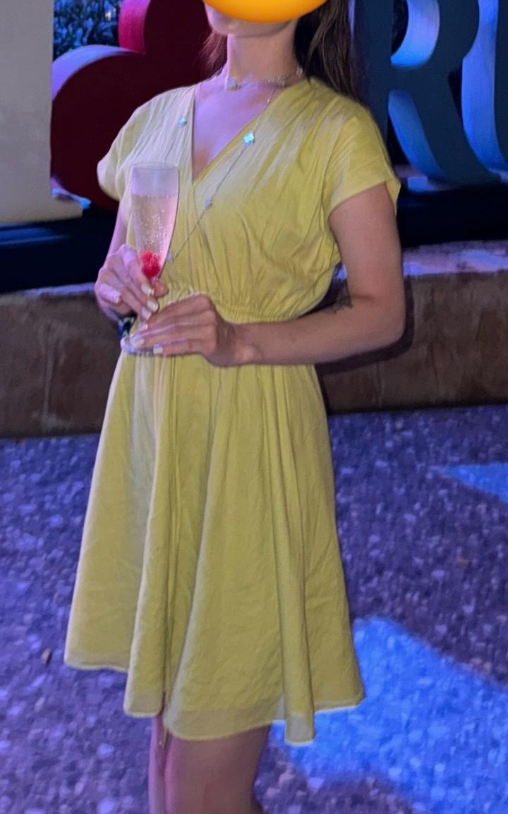 Летнее платьишко из хлопковой ткани, размер s. На талии утягивается. Надевала пару раз, состояние очень хорошее. Артикул: 425094