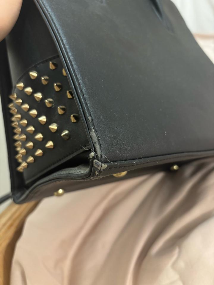 Черная сумка из натуральной кожи. Носила редко. Отлично держит форму, удобные ручки. В комплекте длинный ремешок. Размер 30*30. Есть нюанс — потертость в нижних углах с обоих сторон (показано на фото). В остальном повреждений нет. Артикул: 425499