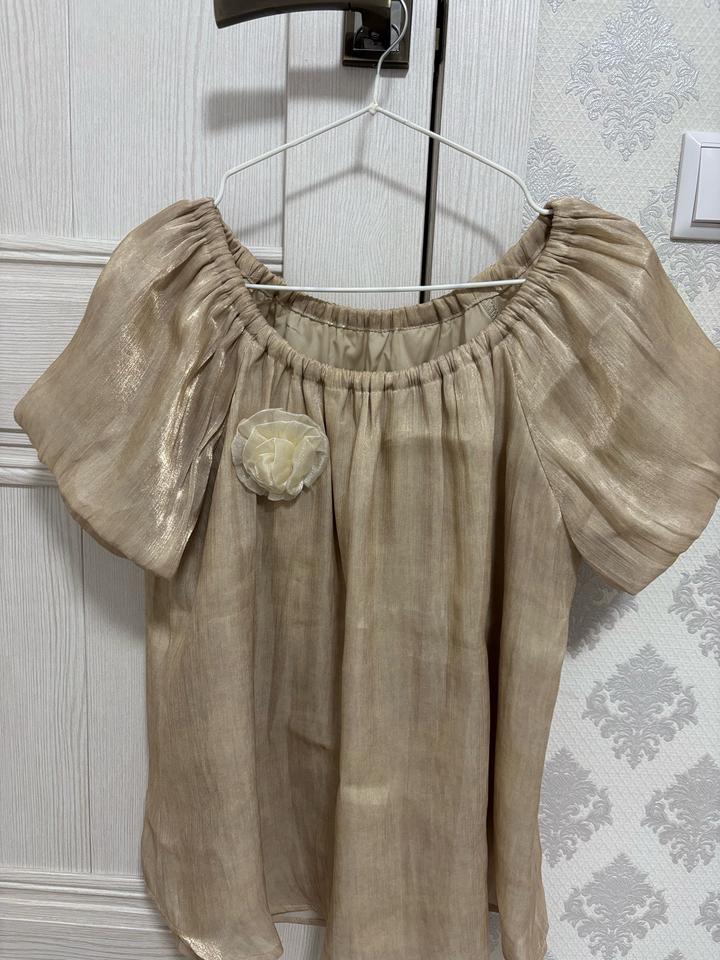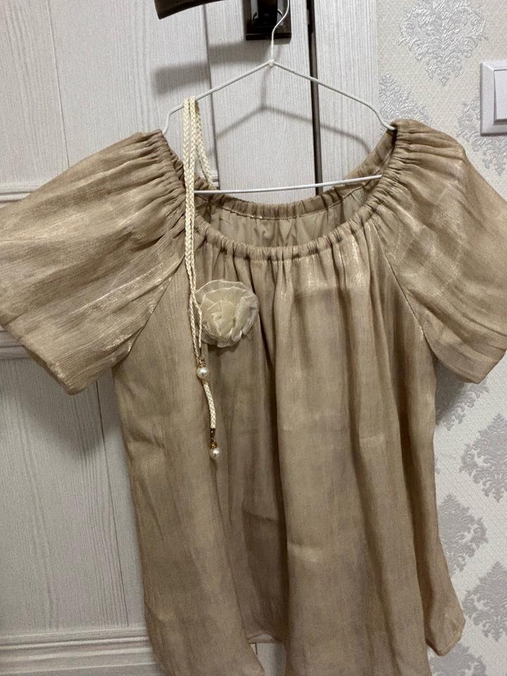бежевое блузка с открытыми плечами. надевала только один раз, в выпускном, так что оно как новое. продаю потому что не вписался в мой гардероб :( Артикул: 425540
