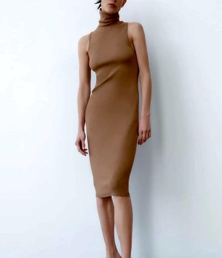 Трикотажное платье ZARA длина мидакси( немного ниже колен) Надевали раз. Небольшой след от глажки впереди ( обратите внимание ‼️ на фото) Подчеркивает фигуру, смотрится шикарно! Артикул: 426398