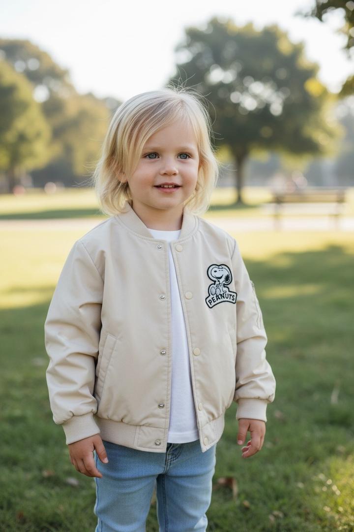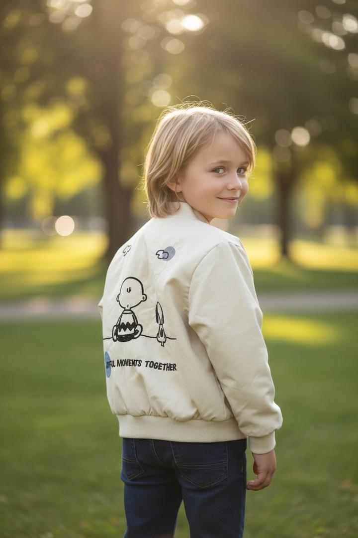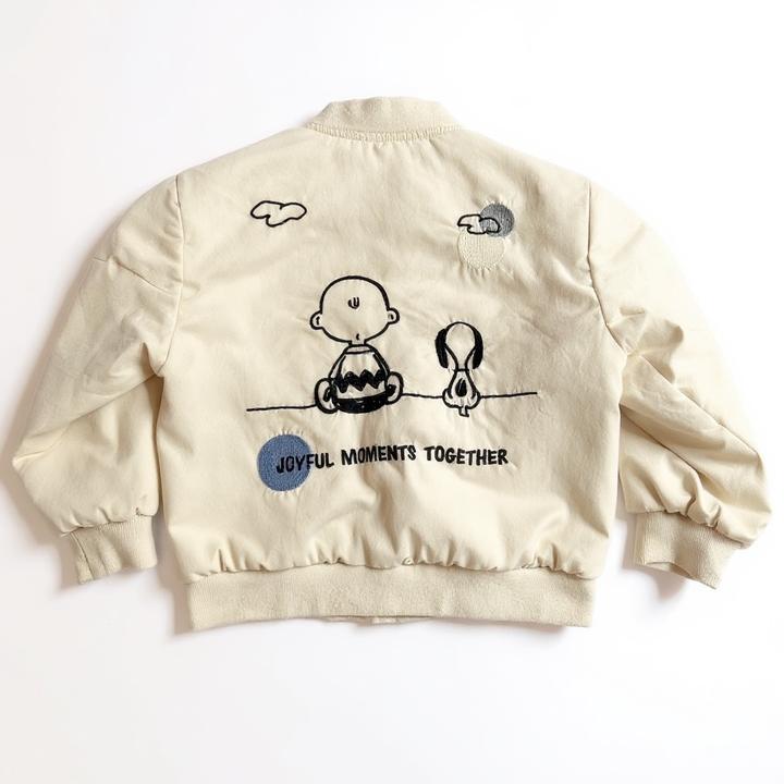 Бомбер с круглым вырезом и длинными рукавами с манжетами. Застежка на кнопки спереди. Передние прорезные карманы. Вышивка Snoopy Peanuts на груди и спине. В идеальном состоянии. Пару выходов всего было. Артикул: 426560