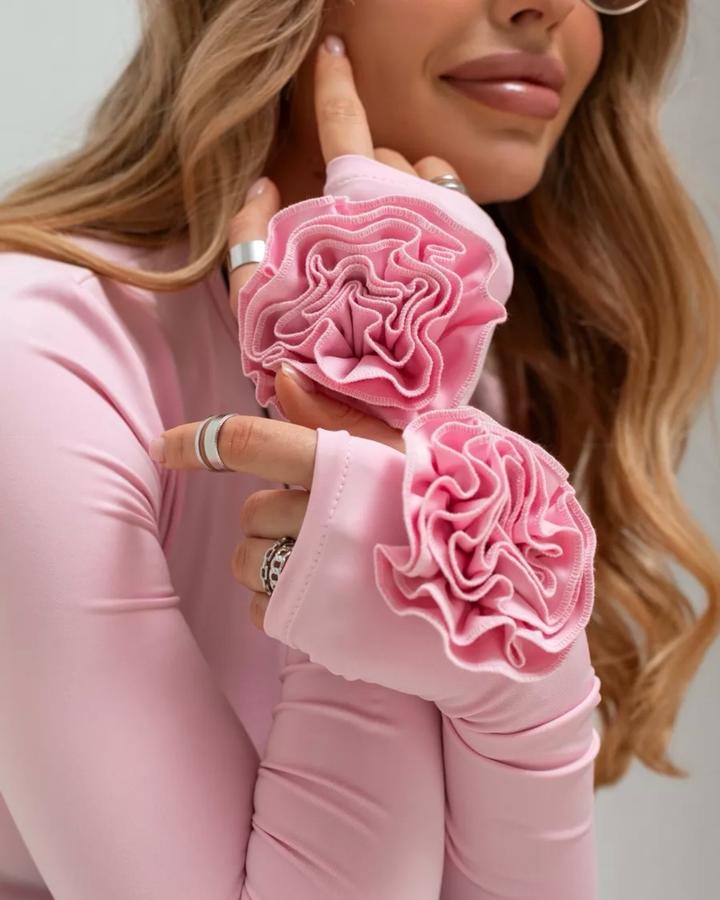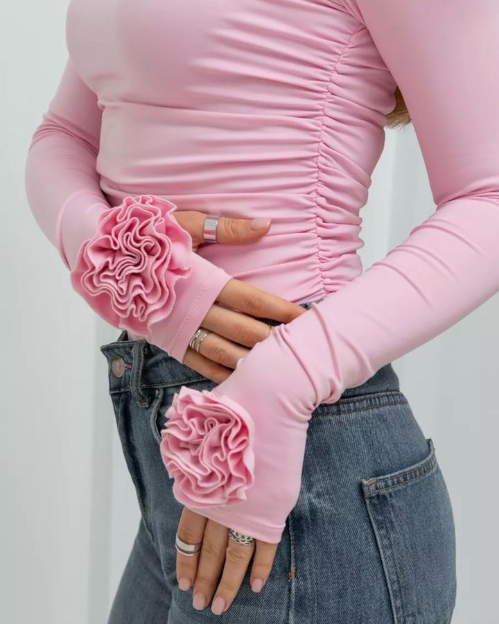 Розовый лонгслив с розами на руках Артикул: 426839