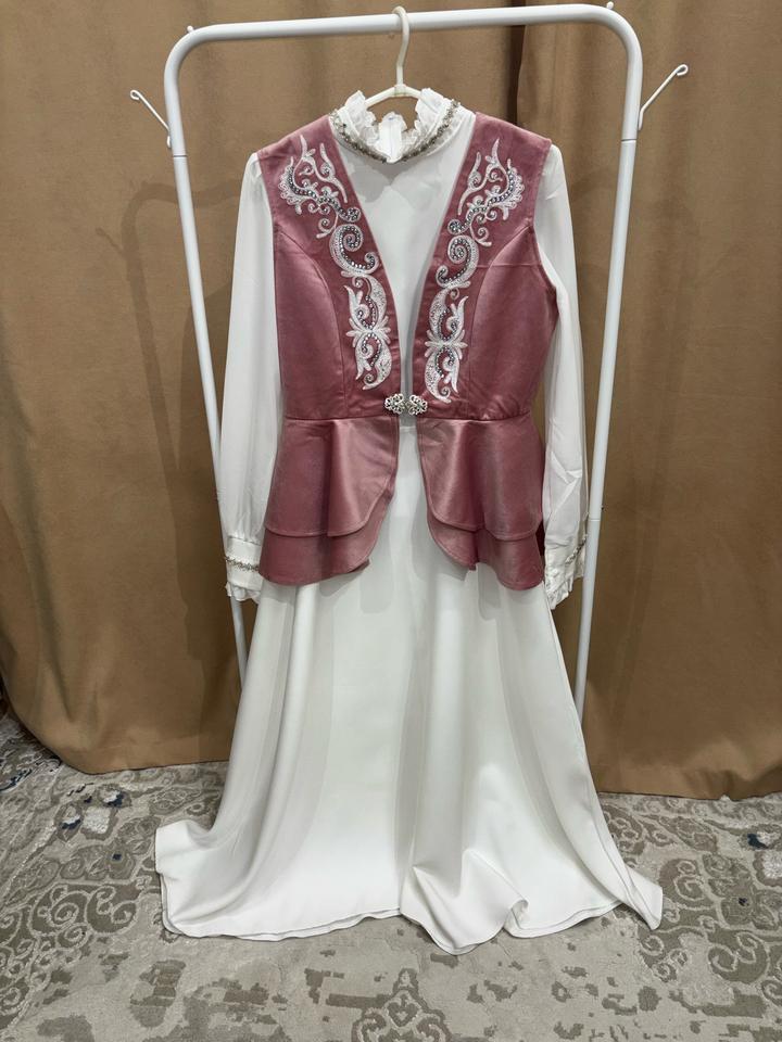 Платье с камзолом (можно купить по отдельности, если вам нужно только платье или только камзол, по цене договоримся) на сырга салу, узату, татти шай, наурыз Подходит на размеры 44-48 Платье длина миди Надевалось 1 раз на сырга салу В комплекте есть ремешок от платья белого цвета из того же материала что само платье Артикул: 427038