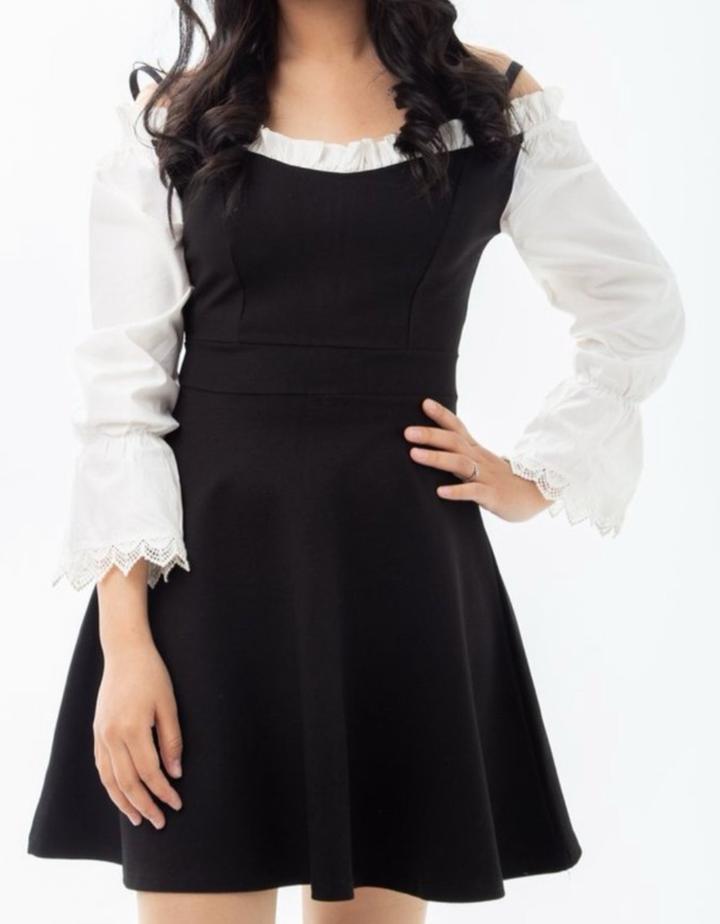 Черное короткое платье,с белыми рукавами. Состояние хорошее Артикул: 427045