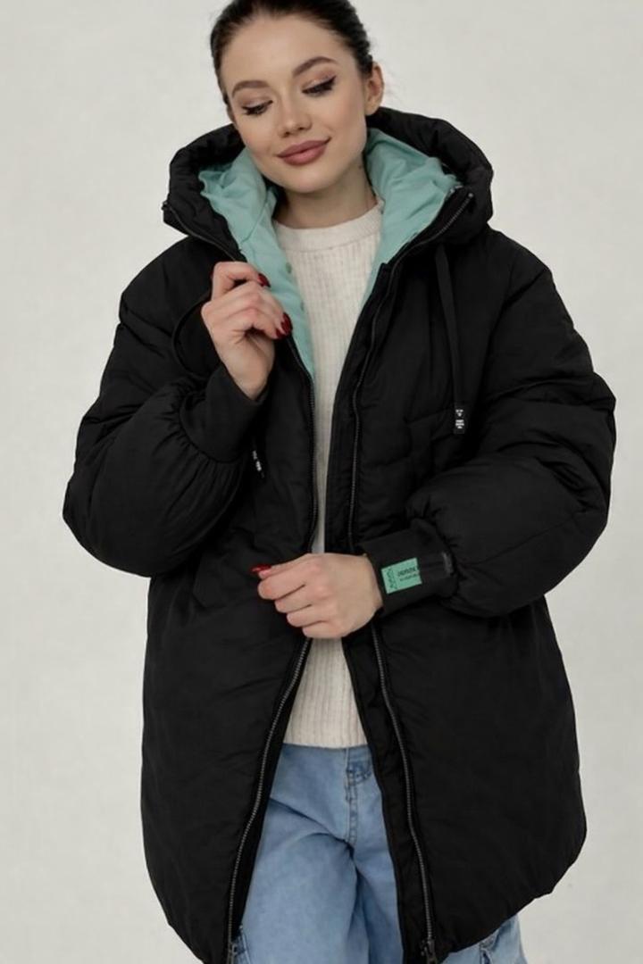 Черная длинная зимняя куртка В отличном состоянии. Капюшон берюзовый. Размер 44/46 Артикул: 427100