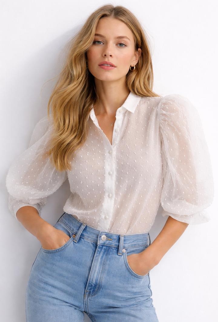 Размер M. Очень легкая, женственная. Рукава фонарики. Очень стильно смотрится. Артикул: 427270