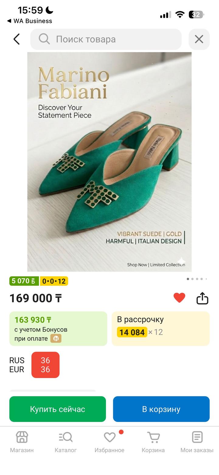 • Премиальные материалы: Верх выполнен из натуральной замши глубокого изумрудного цвета, которая выглядит дорого и эффектно. • Золотой акцент: Массивная золотистая фурнитура с логотипом бренда — главный тренд сезона, который привлекает внимание. • Идеальный комфорт: Стелька и подкладка из 100% натуральной кожи позволяют стопе «дышать» и устойчивый каблук. • Итальянское качество: Обувь Marino Fabiani славится своей износостойкостью и безупречной посадкой. Покупалась за 189.000тг Артикул: 427617
