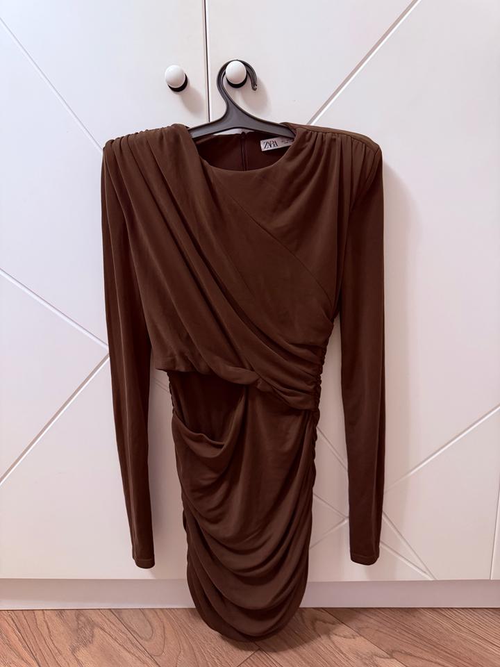 Шоколадное платье Zara. В идеальном состоянии. Размер L , но подходит и на М Артикул: 427658