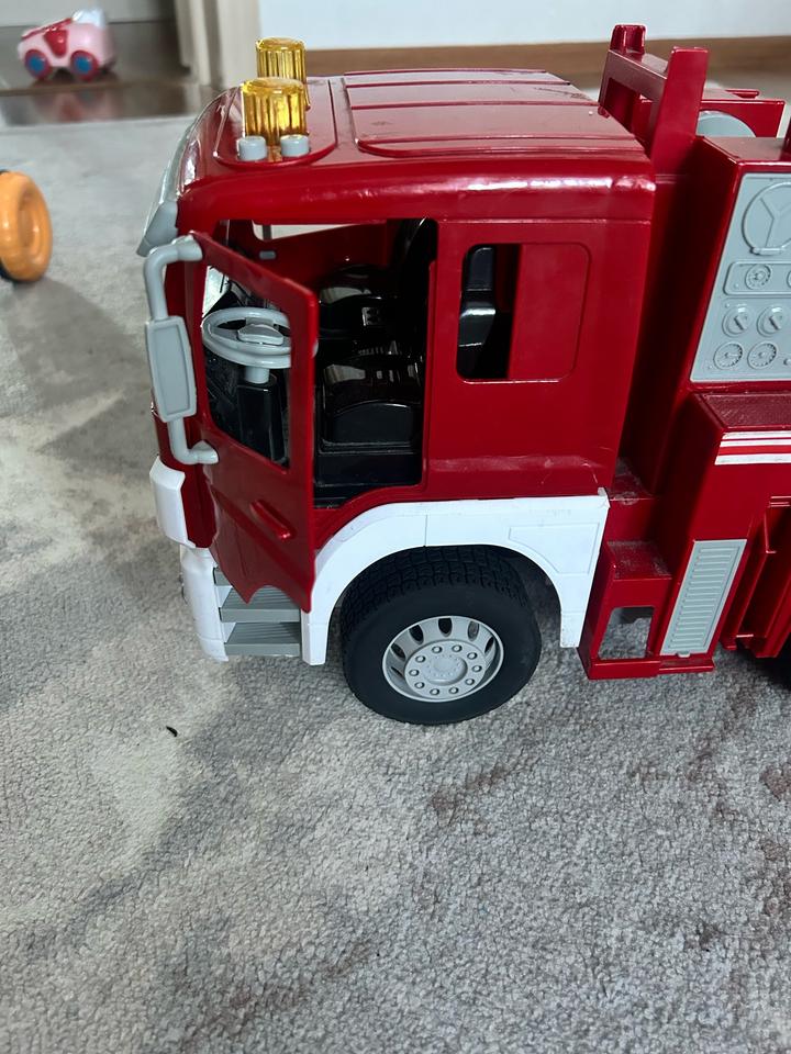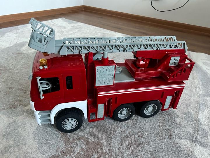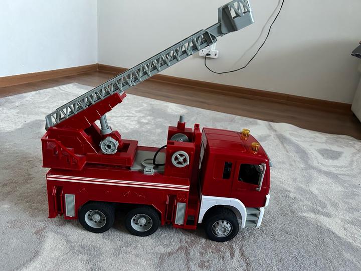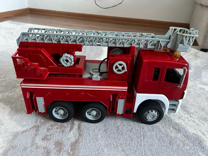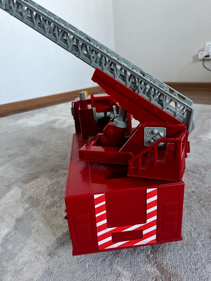 Реалистичная функциональная модель Пожарной машины Mobicaro впечатлит ребенка, особенно любителей спецтехники. Длина машины 48см Лестница выдвигается и поворачивается. Двери открываются. Кабина наклоняется. Резиновые колёса. Подсветка сигнальных огней. Звуки машины. Машина в идеальном состоянии, единственный нюанс шланг не работает. Подсветка и звуки все работают. Покупали за дорого в детском мире Артикул: 427728
