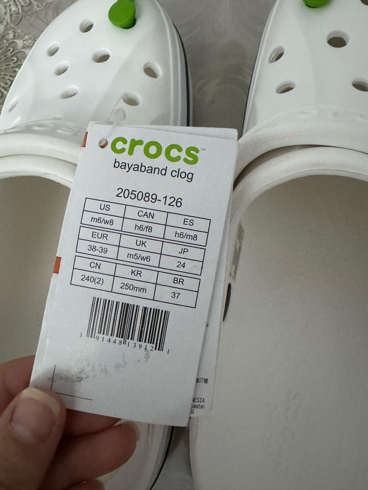 Продам кроксы новые, не носили. Покупали в официальном магазине, размер 38-39, реальному покупателю положу дополнительно в подарок джибетсы Артикул: 428007