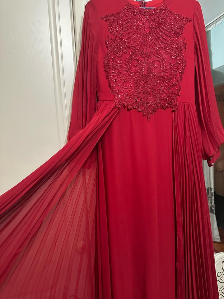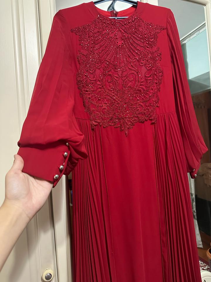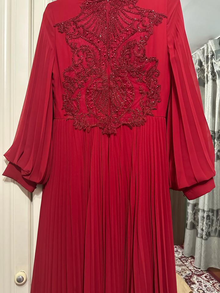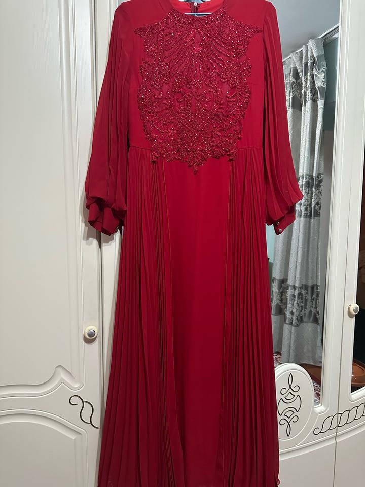 Одевала 1 раз 2 часа Красное платье со щлейфом Размер 42-44 Покупала за 45тыс Артикул: 428014