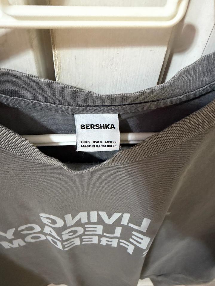 стильная футболка BERSHKA с эффектом потертости , для легких расслабленных образов , модель unisex, размер S , на девушке будет слегка оверсайз Артикул: 428224