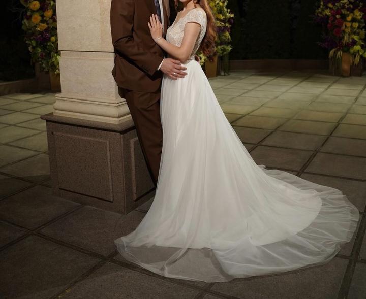 Свадебное платье Размер 42-44, надевала один раз как второй образ на узату Платье а брала в салоне IVORY в 2025г. Покупала за 280 тысяч Бренд ANNA KUZNETCOVA Артикул: 428390