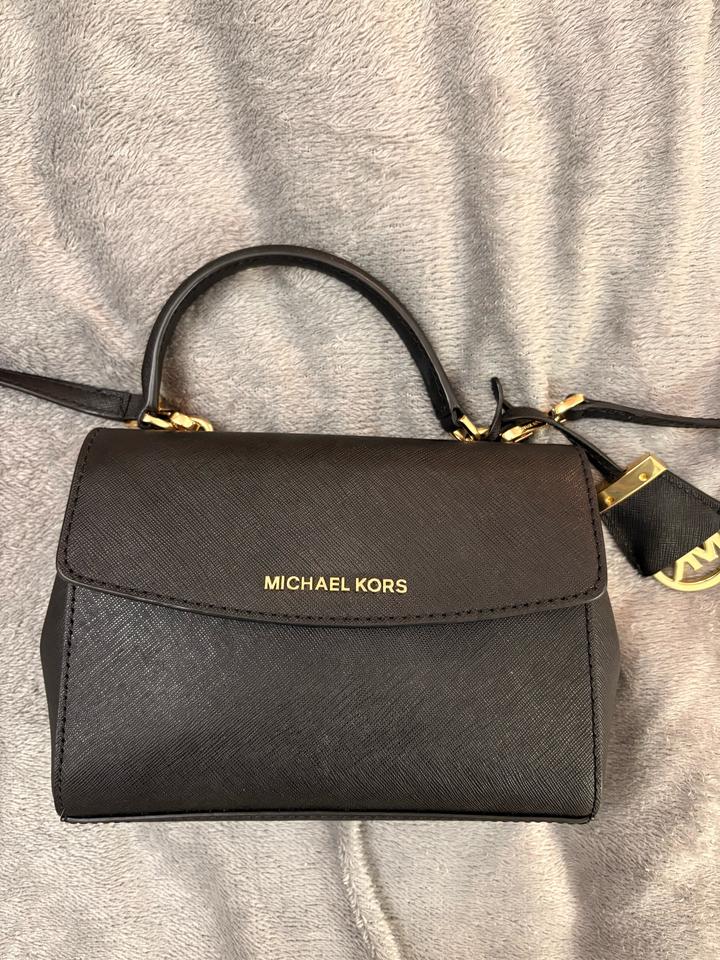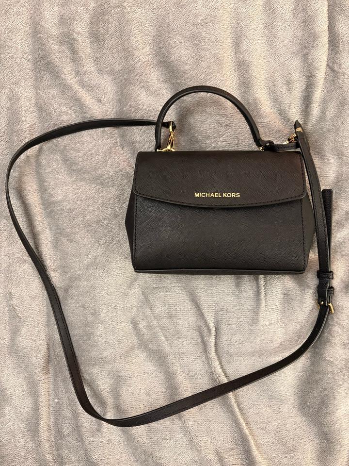 Сумка Michael Kors Ava Extra-Small из сафьяновой кожи черного цвета, оригинал! Купила в северной Америке в бутике. В идеальном состоянии, ремешок регулируется 120 см, углы все в идеале 100% сафьяновая кожа, фурнитура: золото. 20,3 /13.30/7,6см Носила пару раз Артикул: 428646