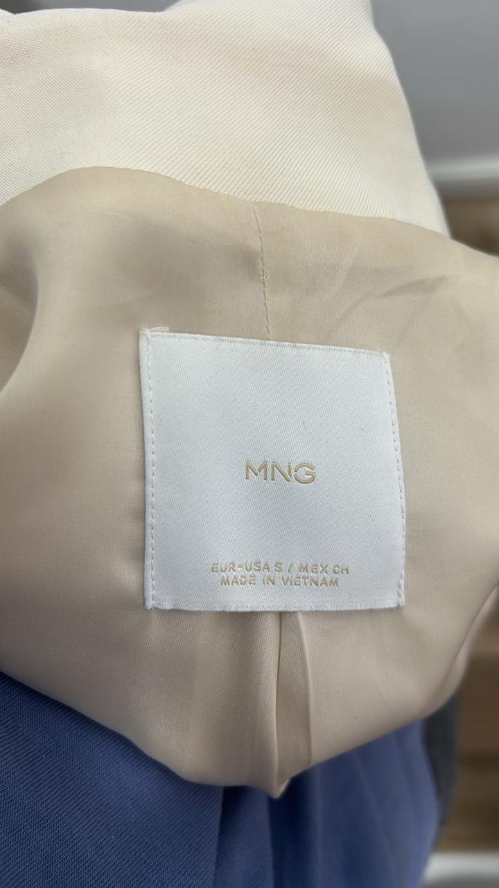 Пиджак Mango, надевала несколько раз, состояние идеальное. Цвет теплый белый Состав: 93% вискоза, +7### ### ## ##дство: дизайн — Барселона; пошив — Вьетнам; ткань и окрашивание — Южная Корея. Артикул: 429161