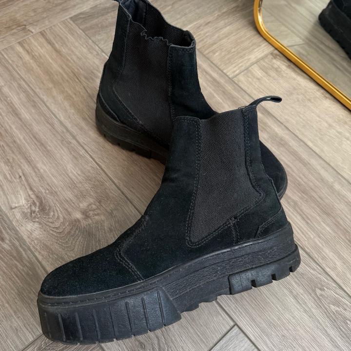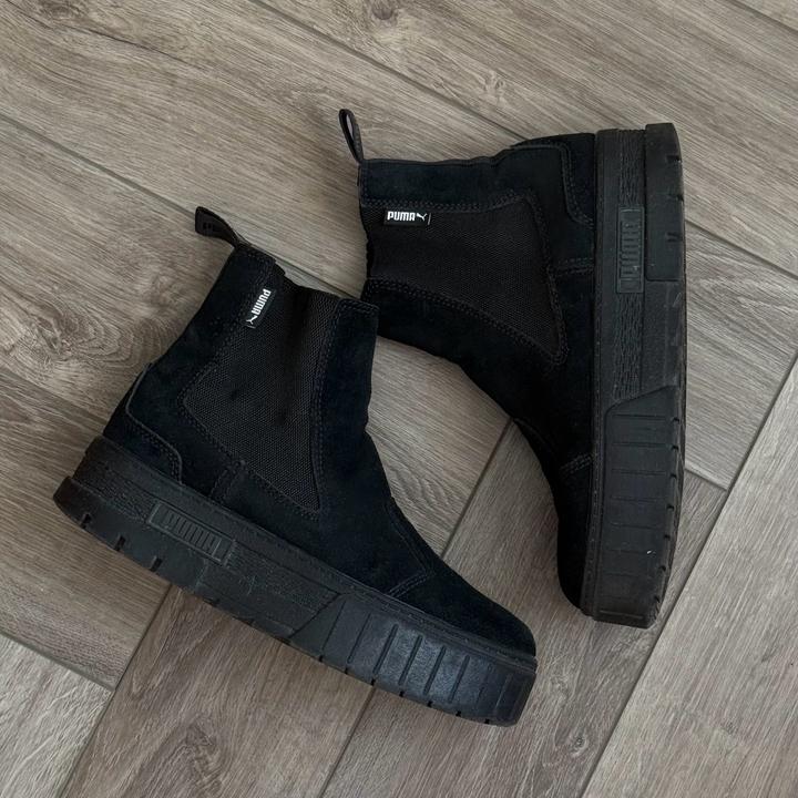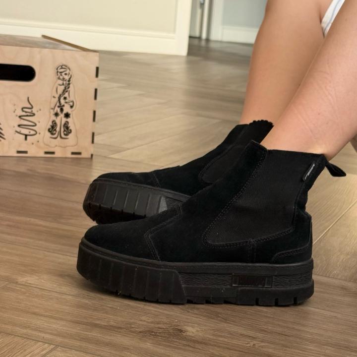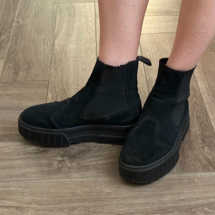 Черный ботинки Puma, снаружи - натуральная замша, внутри - натуральная кожа. Подойдут на стопу 23,5 см - 24 см. На замше есть чуть следы поношенности, если смотреть прям на солнце, но так они в хорошем состоянии. Можно носить как зимой, так и в начале весны, в конце осени, очень крутые ботинки, последние года 2 я их уже не носила, жалко что стоят, хочу продать. Артикул: 429220