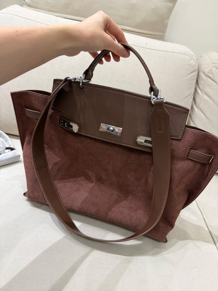 Замшевая сумка в шоколадном цвете, натуральная кожа. Надевала один раз. Очень стильная. Два дополнительных ремешка, запечатанный ремешок для ношения crossbody. Есть небольшая царапина, которую вообще не видно в носке, в остальном идеальное состояние Артикул: 429328