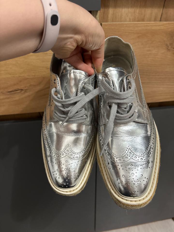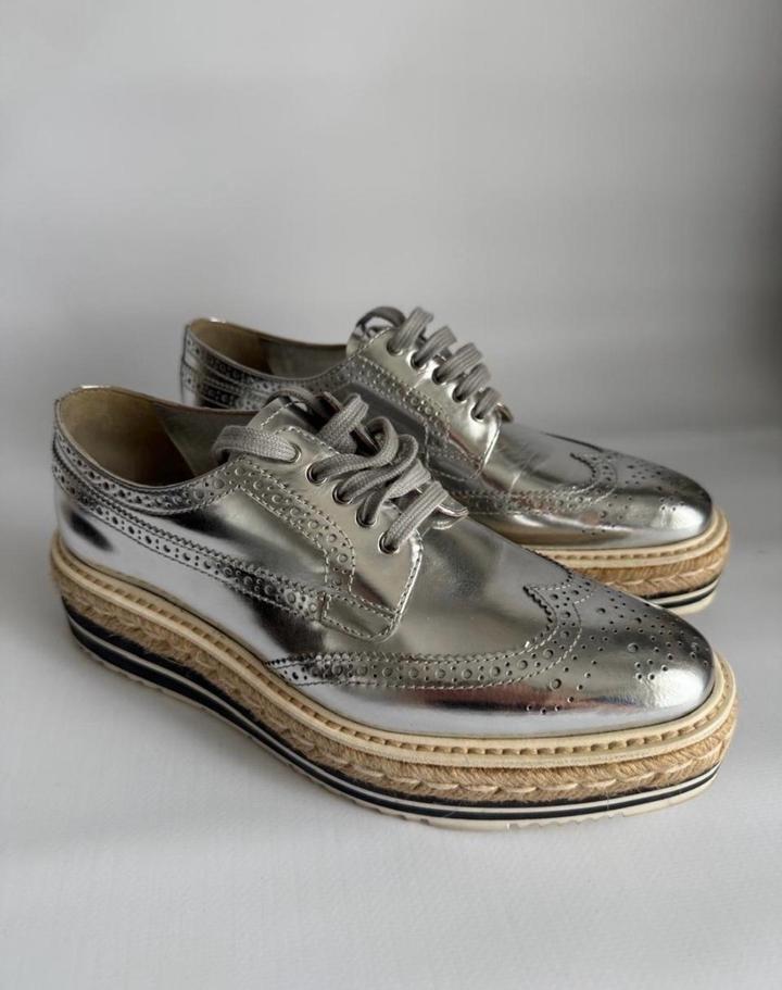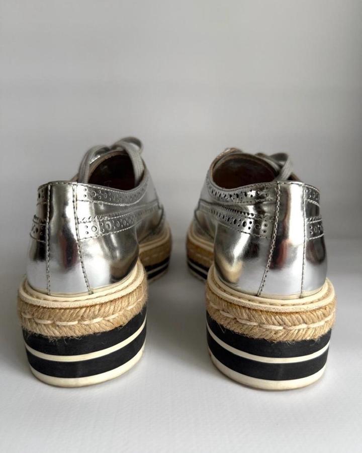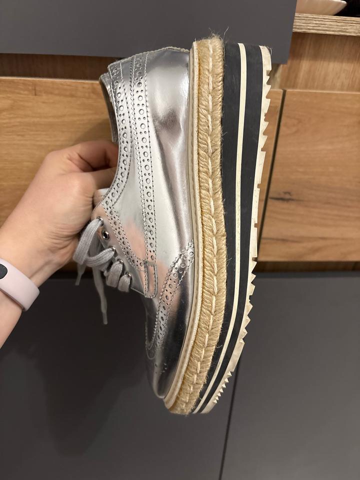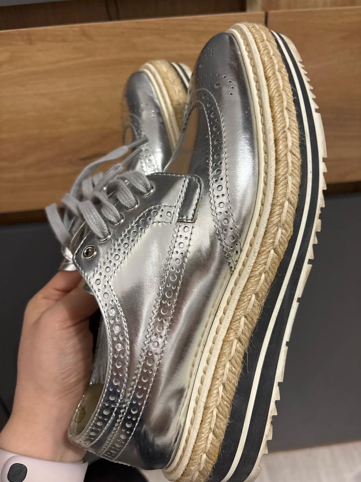 Продаю Оксфорды Prada оригинал 💯 размер 38 маленькие мне оконяательная цена 35.000 тг Астана на платформе цена окончательная указана с комиссией! Состояние отличное качество в том числе! Артикул: 429640