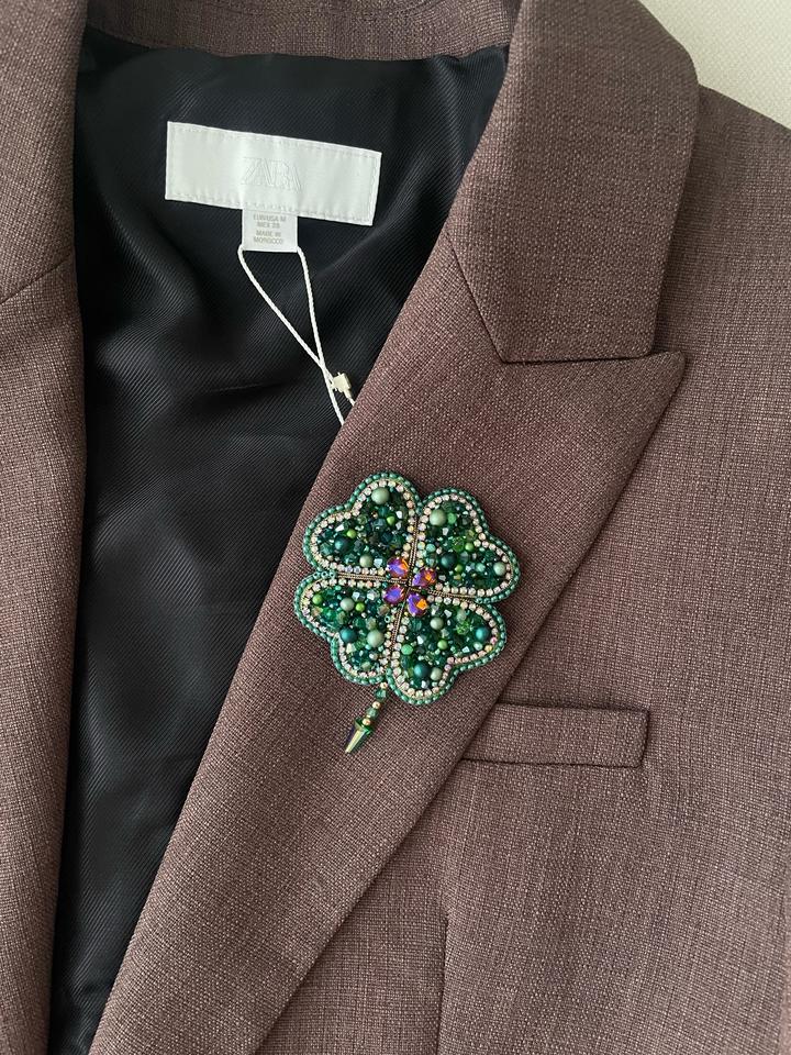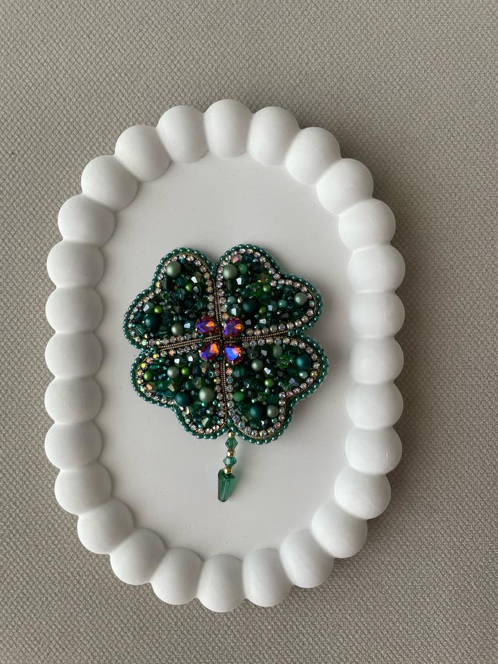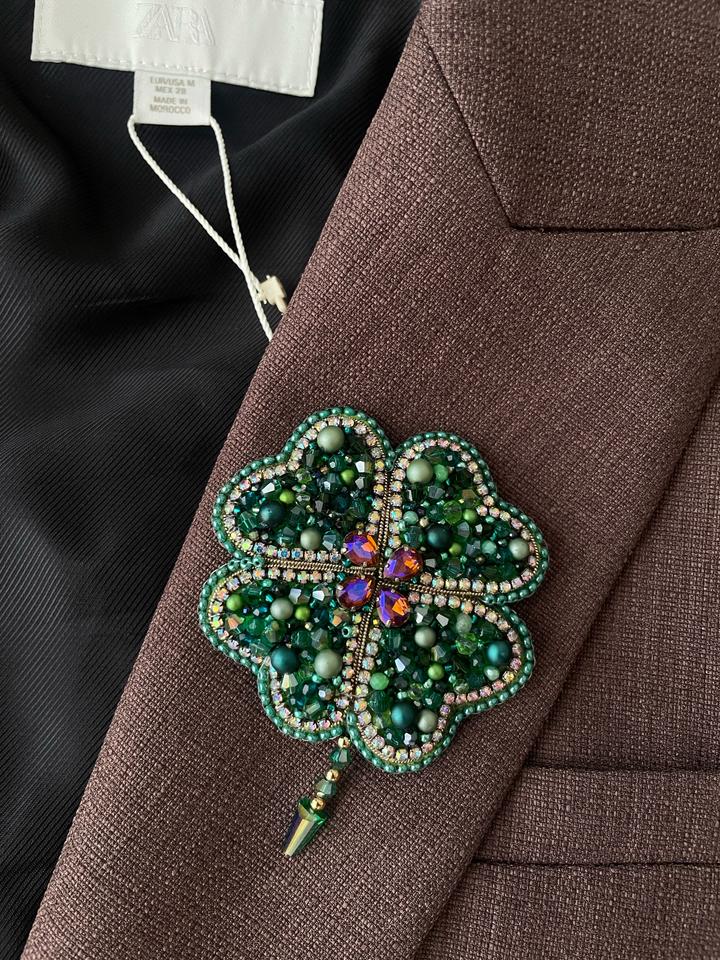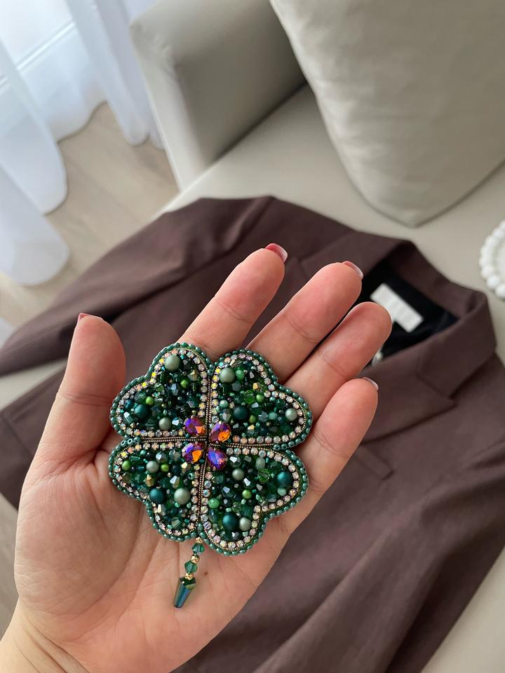 Брошь клевер 🍀 ручная работа, бисер, стразы. Артикул: 429905