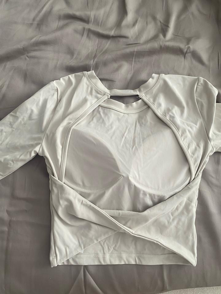 Сплртивный кроп топ с чашками, в бежево-молочном цвете. Покупался в 7around. Ни разу не надевался, только примерка была🙏🏻 Размер L (но подходит на S/M) Артикул: 430588