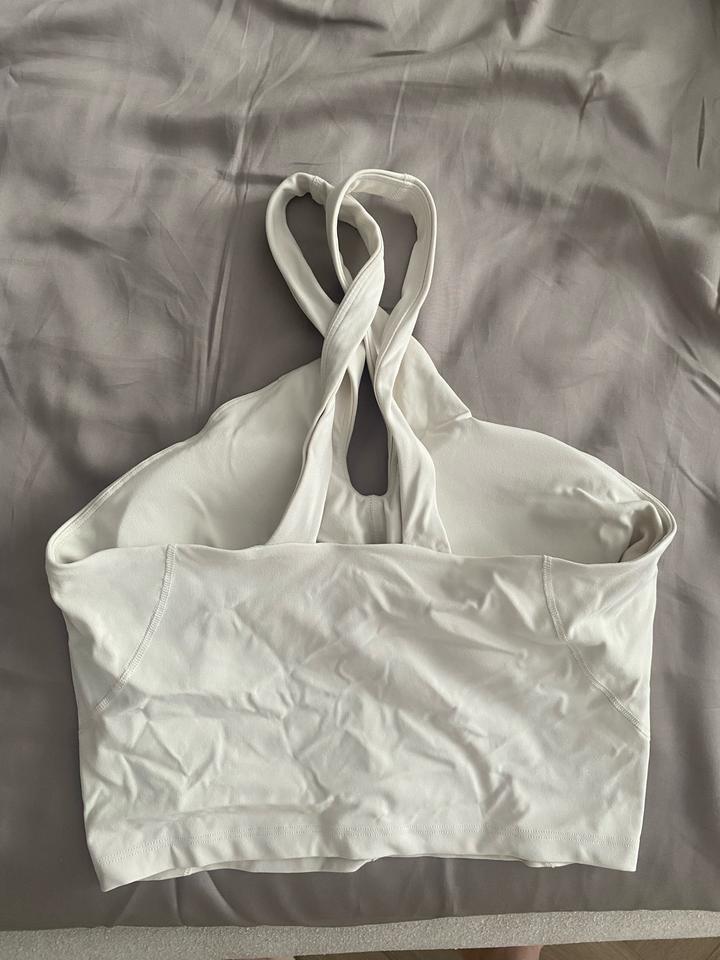 Молочный топ бра, продевается через шею, очень красиво смотрится 🙌🏻✨ Состяние отличное, надевался 1-2 раза. Размер L Артикул: 430597