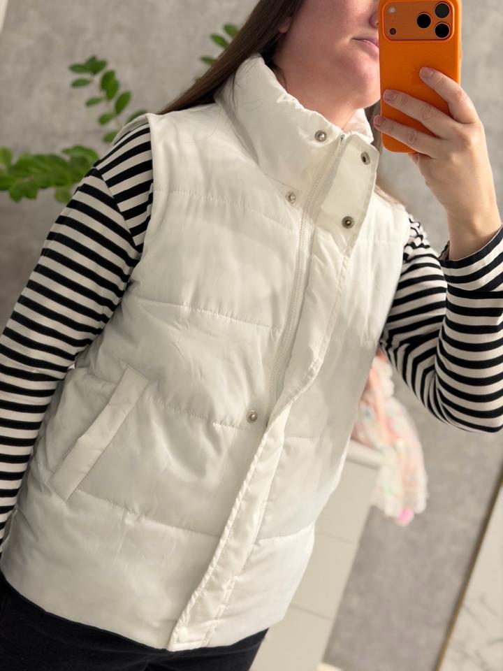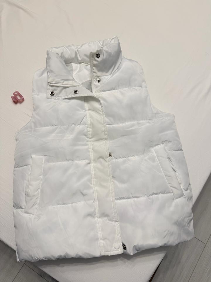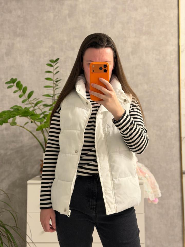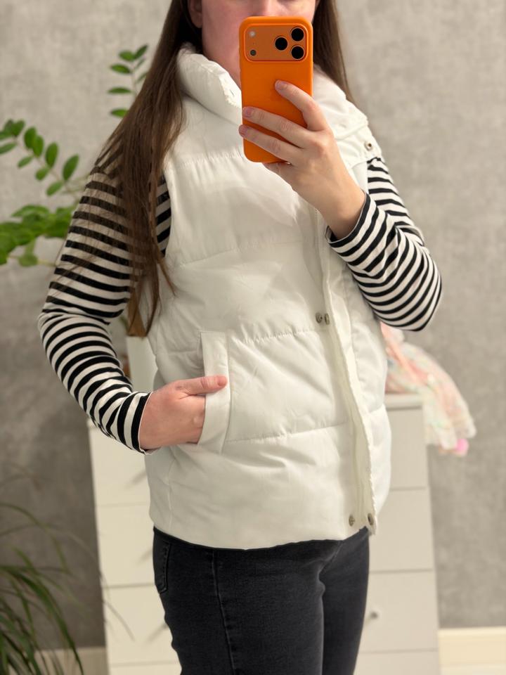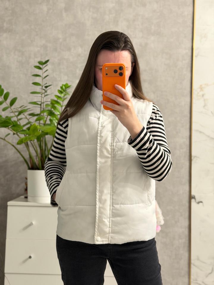Продам новую жилетку, цвет: кипельно белый. Подойдет на 48 размер, M-L. Внутри теплый искусственный наполнитель, скроена хорошо по фигуре. Жилетка на замке, который сверху прикрывается планкой от ветра и планка на кнопках (есть на фото). По бокам есть карманы. Жилетка легкая, удобная, складывается в маленький сверток. Их есть 2 шт одинаковые, единственное одна идеал, а вторую надо будет чуть постирать. Цена указана за 1 шт! Артикул: 431037