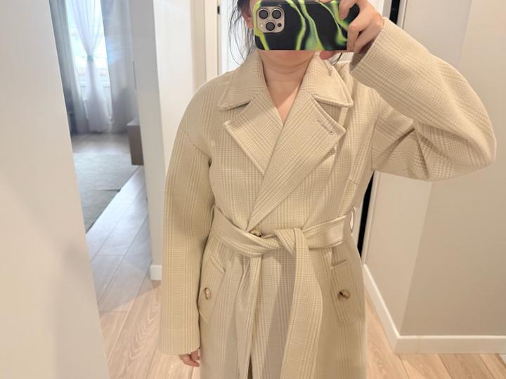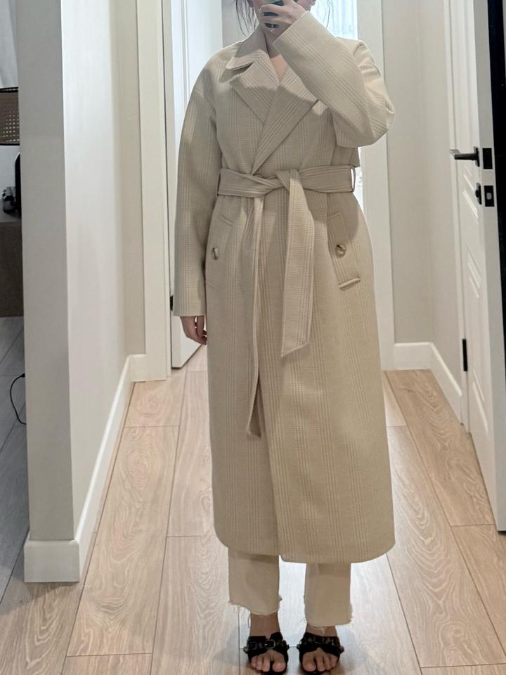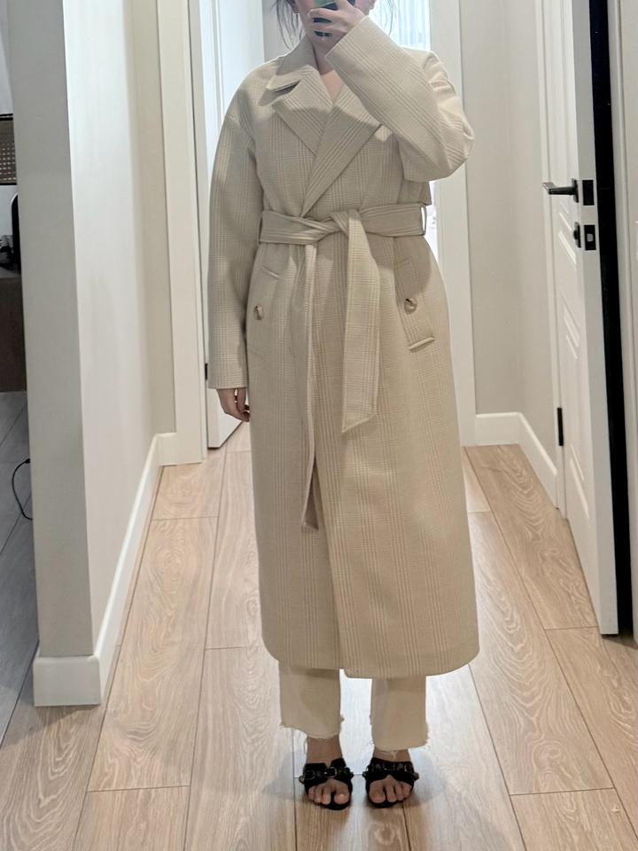 Бежевое пальто в клетку 50% шерсть 50% полиэстер Артикул: 431198