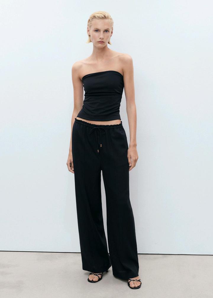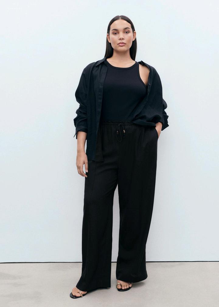 Льняные брюки с эластичным поясом MANGO, Ткань из смеси льна. Длинный дизайн. Прямой крой. Эластичный пояс со шнуром. Два боковых кармана. Без застежки. Размер L (USA) Артикул: 431277