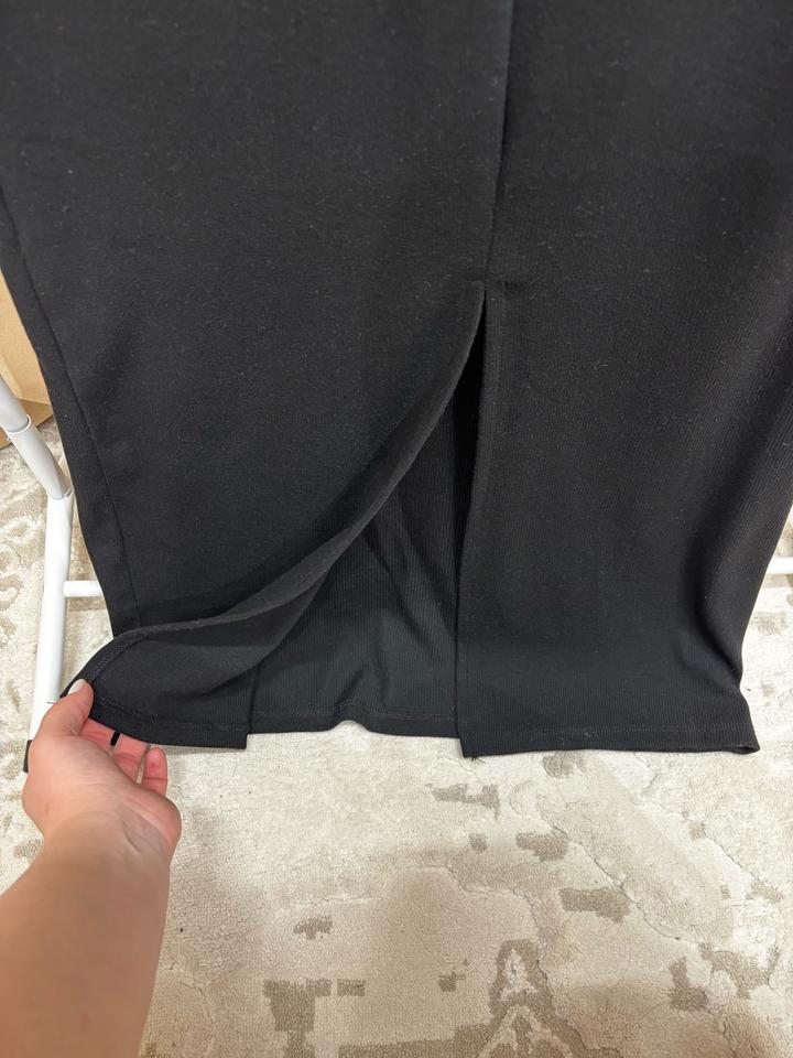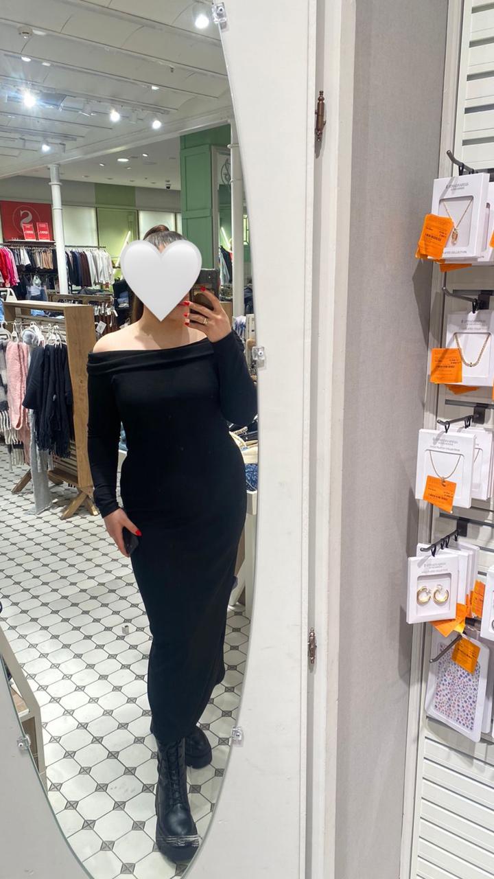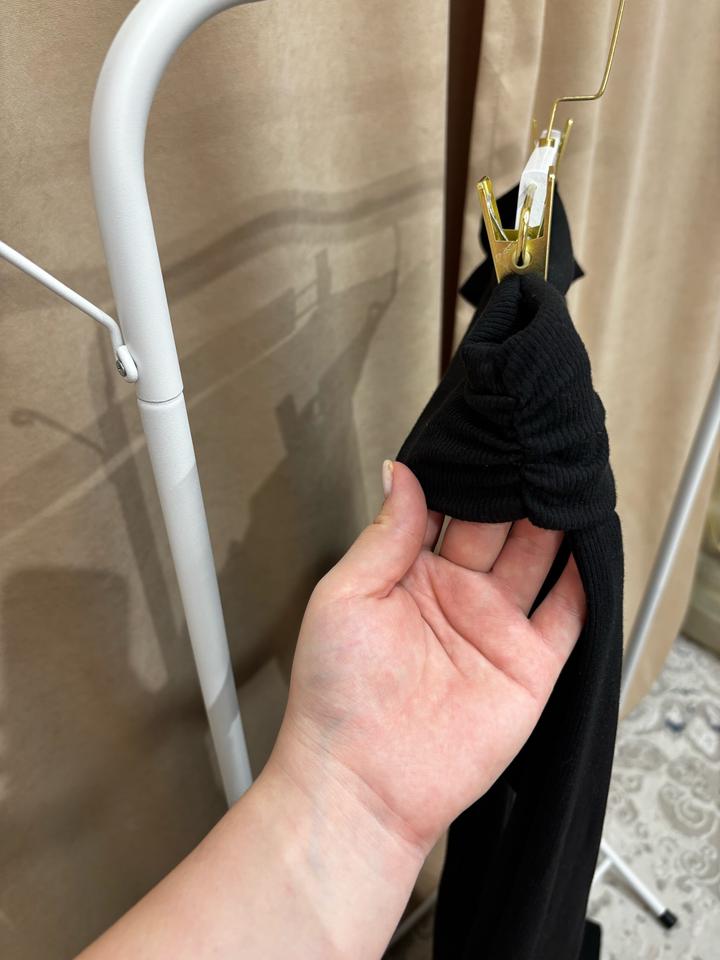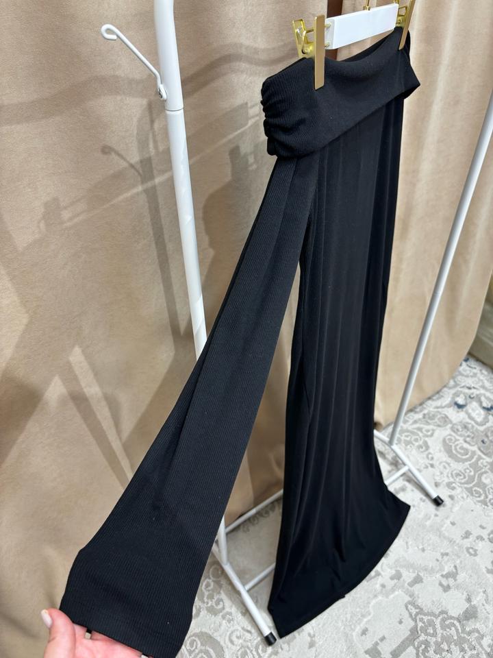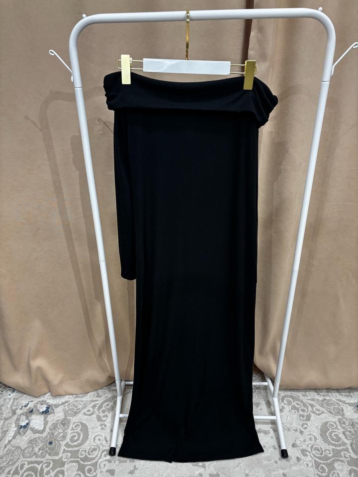 Платье с открытыми плечами чёрного цвета. Длина миди, с вырезом от колена сзади Размер М-Л, ткань тянется, не сковывает движение Артикул: 431310