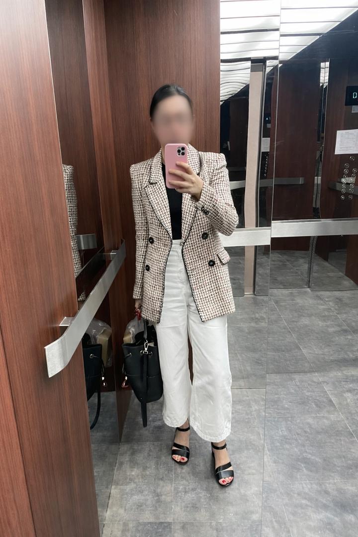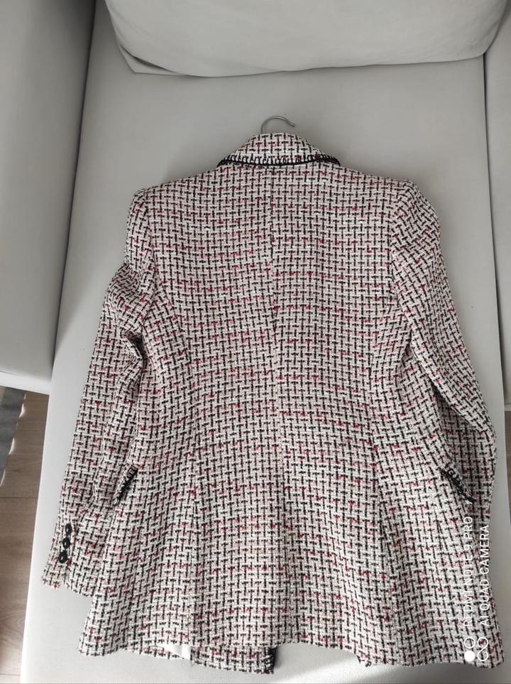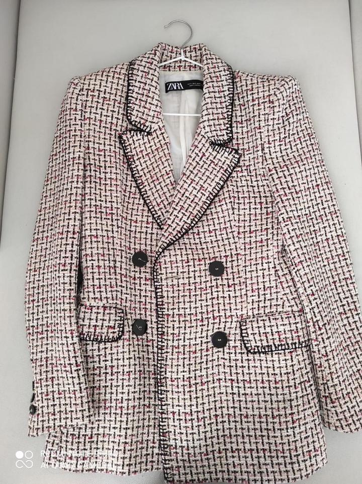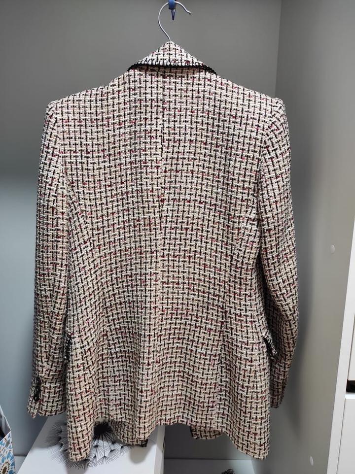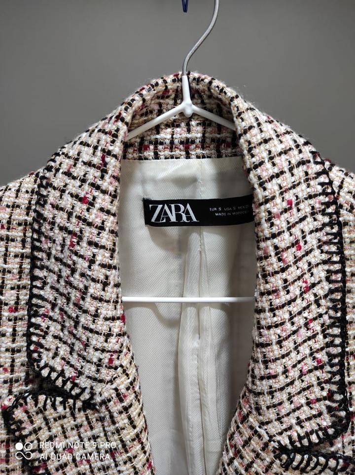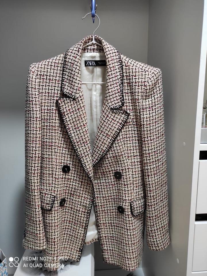 Жакет Zara. Очень стильный, жаль мне маленький стал. Размер S. Из-за подплечников чуть-чуть визуально делает плечи шире. Приталенный Артикул: 431780