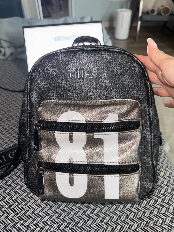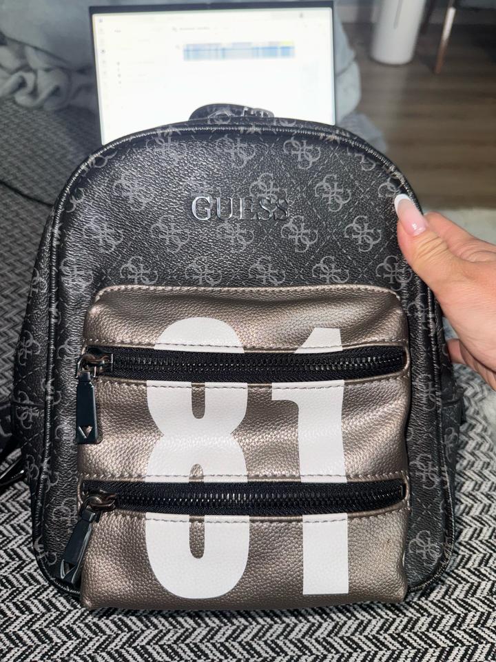 Рюкзачок Guess, состояние идеальное, не убиваемый, внутри есть пятно от Чая, не влияет на внешний вид, все замки рабочие Артикул: 431790