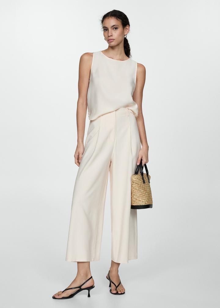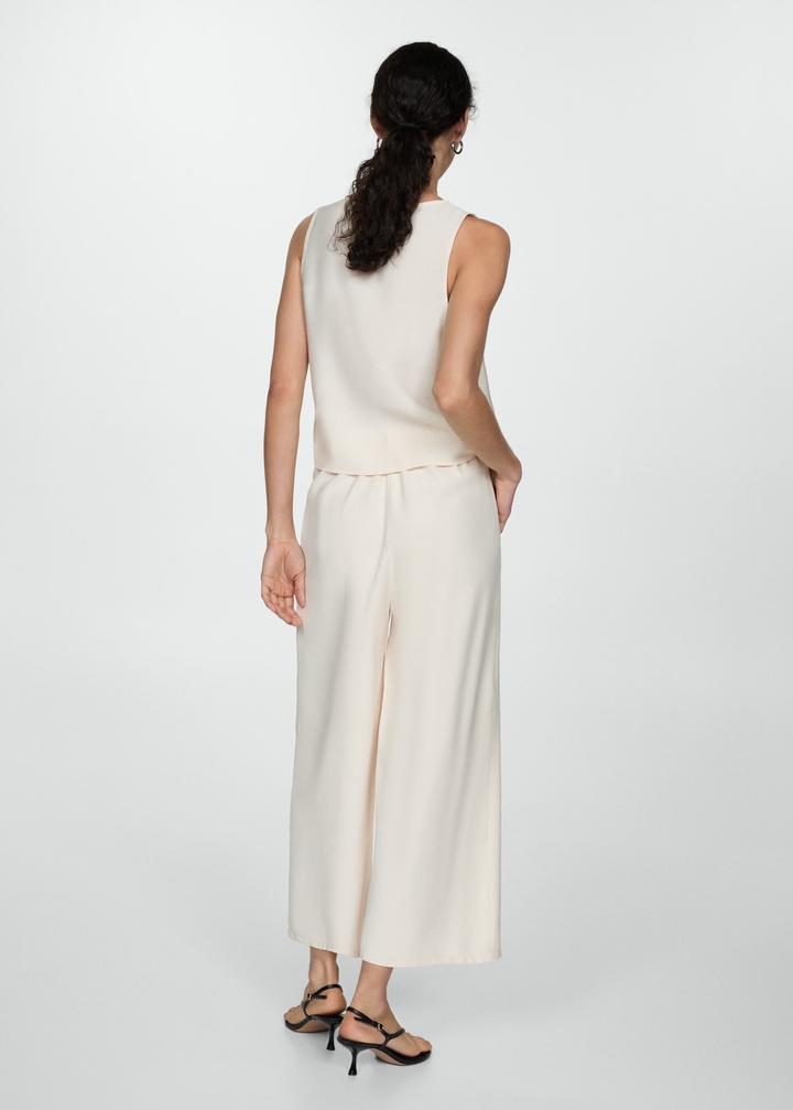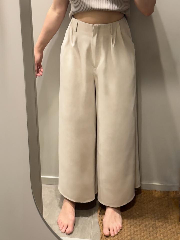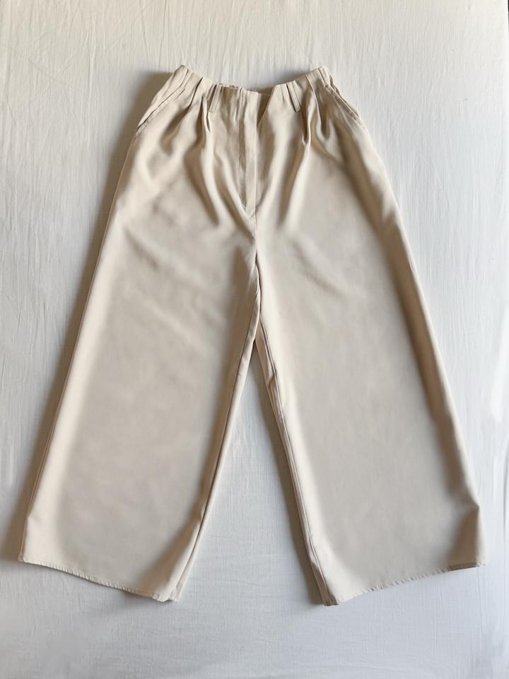 Светло-бежевые (цвет экрю) брюки-кюлоты (укороченные) от Mango. С карманами, шлёвками для пояса, сзади на резинке. 93% вискоза. Состояние идеальное, практически новые, надевались пару раз. На рост 160 - по щиколотку, от 175 см - выше щиколотки Артикул: 432356