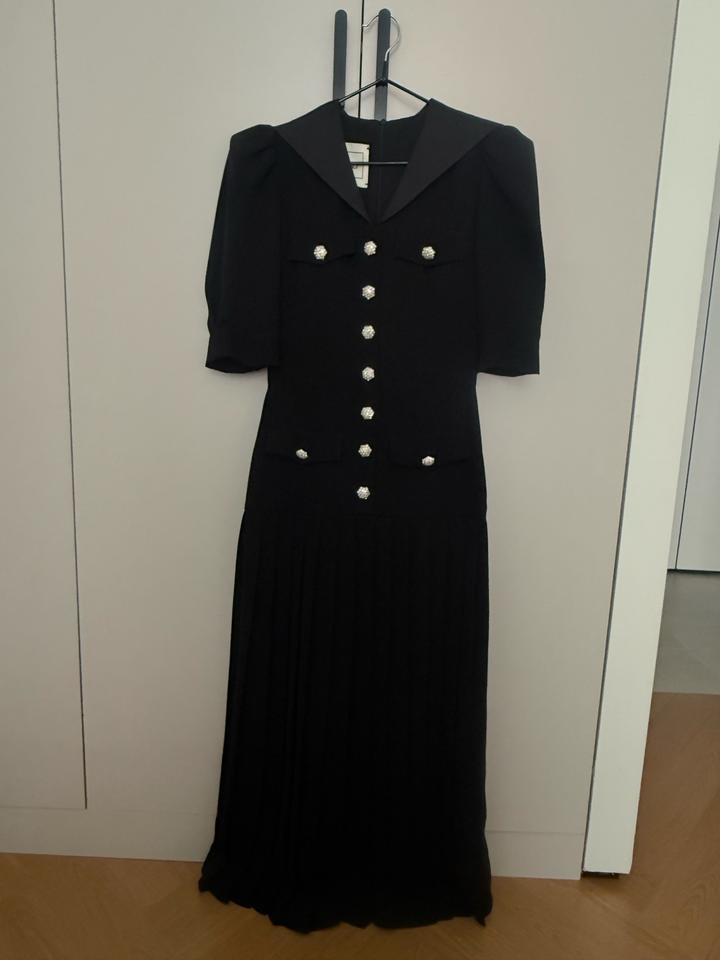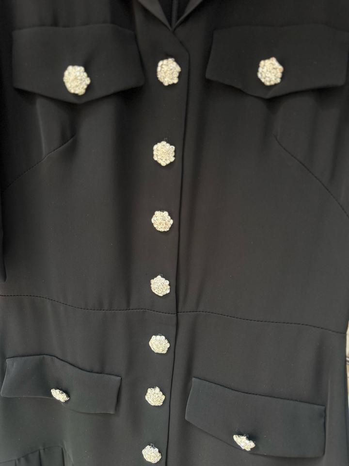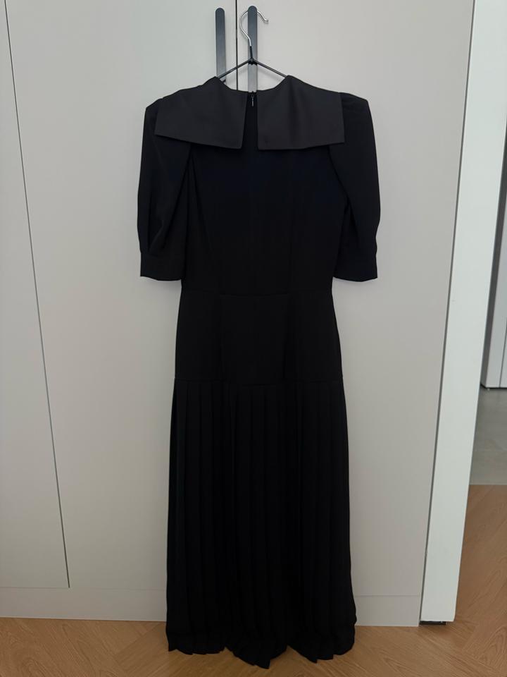 Чёрное вечернее платье миди с плиссированной юбкой, декоративными пуговицами, объёмными рукавами и элегантным воротником. Надевала платье всего один раз на свадьбу. В идеальном состоянии. Артикул: 432516