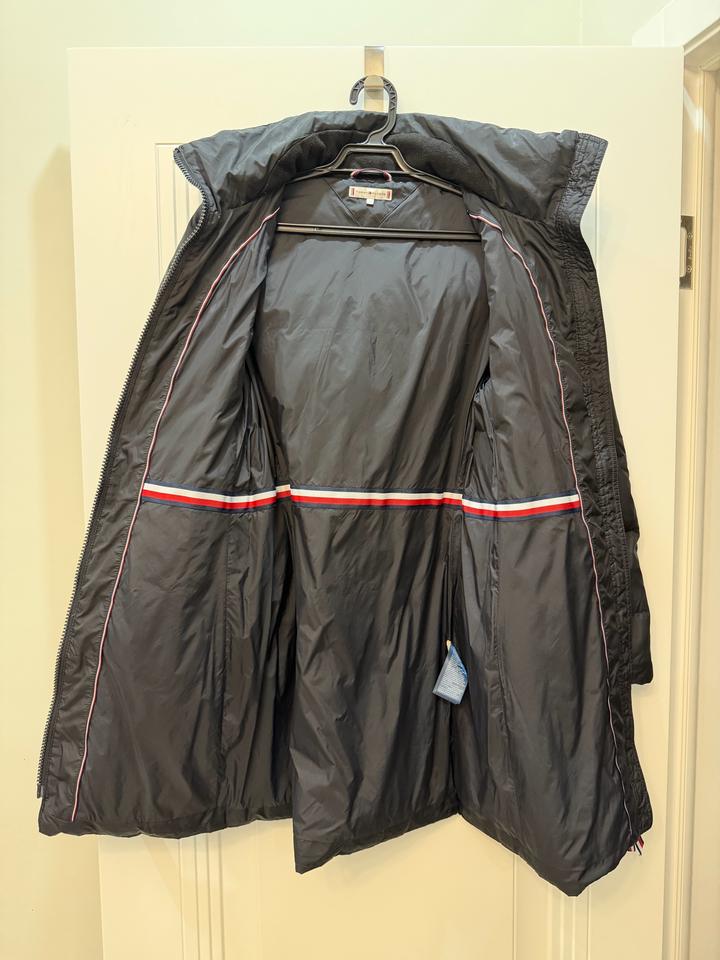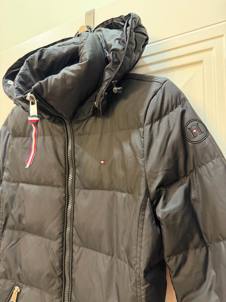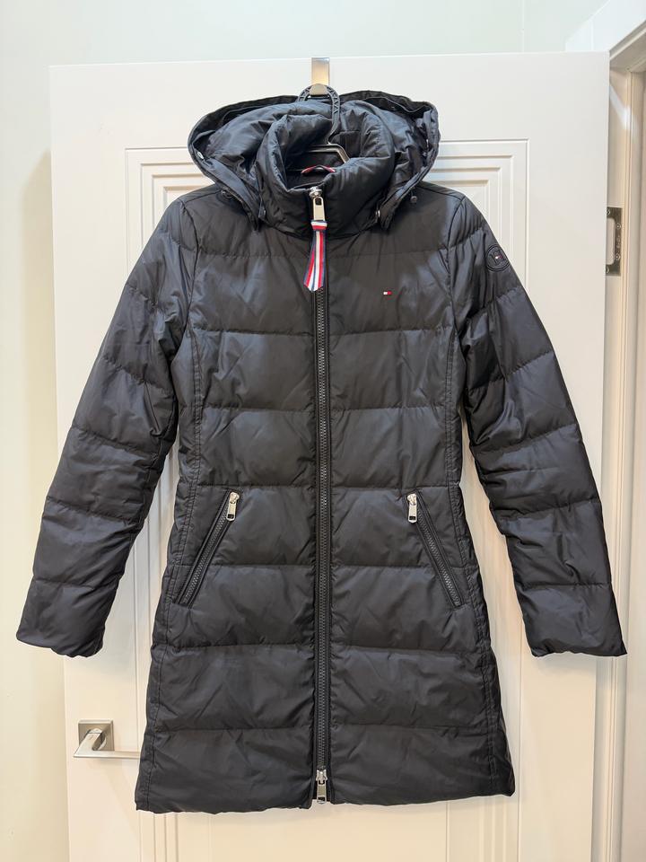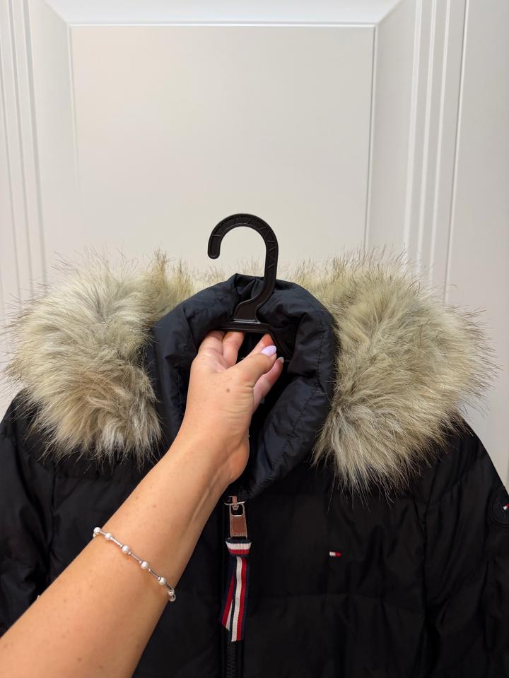 Куртка на пуху Tommy Hilfiger, на теплу зиму/демисезон, фасон приталенный, сидит по фигуре, размер XS. Капюшон съемный, также съемный искусственный мех на капюшон. Артикул: 432851