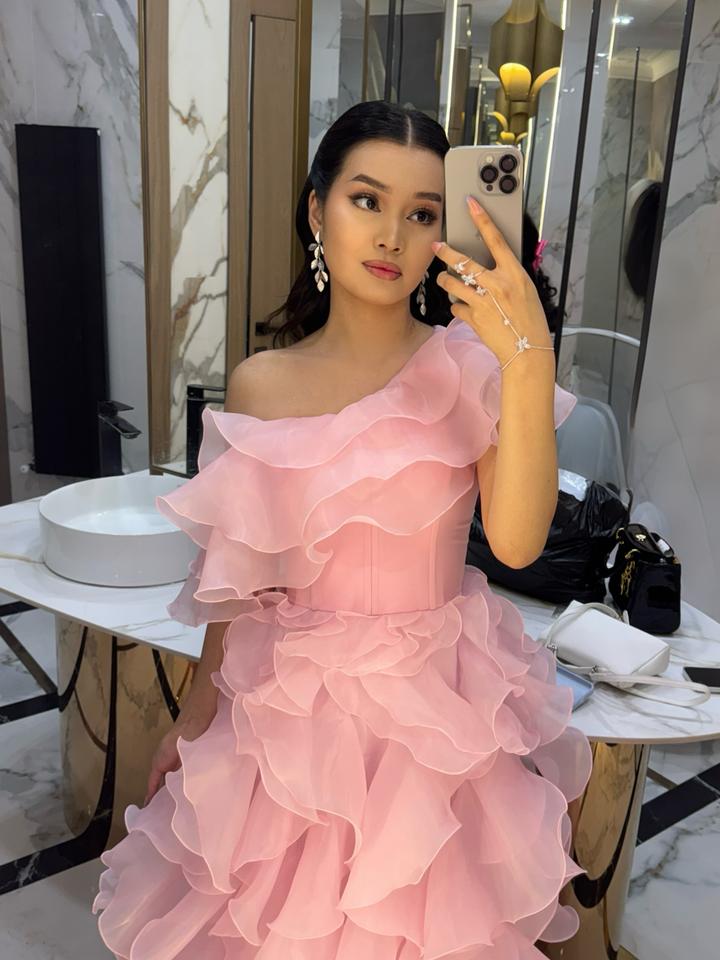 Нежное вечернее платье пудрово-розового оттенка, сшито на заказ. Многоярусные воланы из лёгкой полупрозрачной ткани создают воздушный объём и красиво смотрятся в движении. Асимметричный верх с открытым плечом подчёркивает линию шеи и ключицы. Платье на корсете, отлично садится по фигуре и регулируется, поэтому подходит на размеры XS–M Надевалось всего один раз, состояние идеальное Идеальный вариант для выпускного вечера, вечерного мероприятия Эксклюзивная модель второго такого не будет 🤭🤭💘 Артикул: 433238