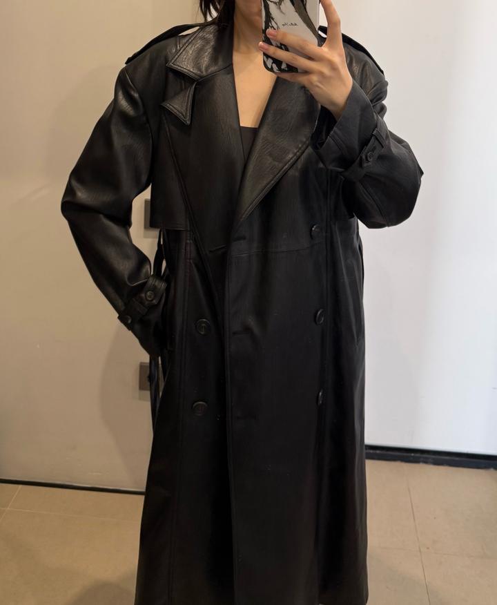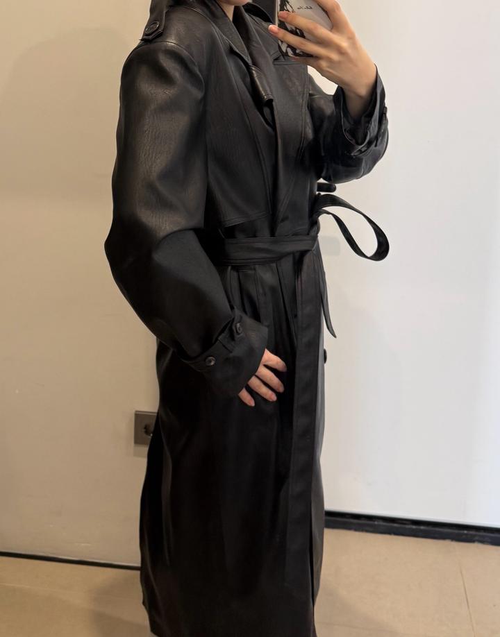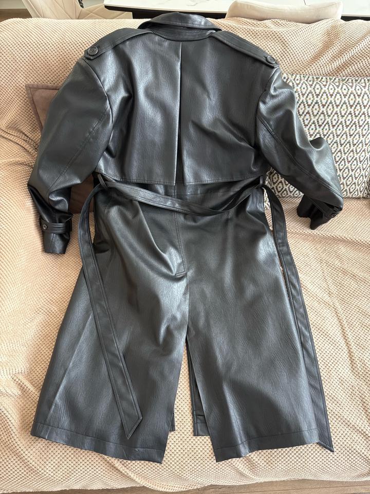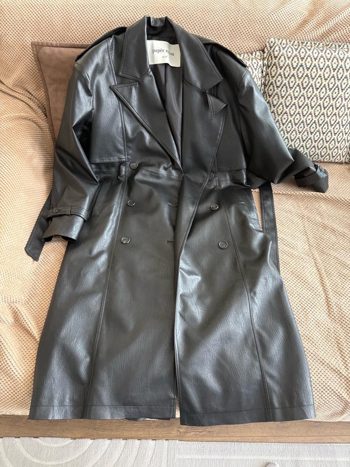 Кожаный тренч Paper Moon. Премиум бренд. Производство Корея. Материал: веган кожа. Размер стандартный. Состояние отличное, надевался 2 раза. На пуговицах, имеется пояс. Артикул: 433279
