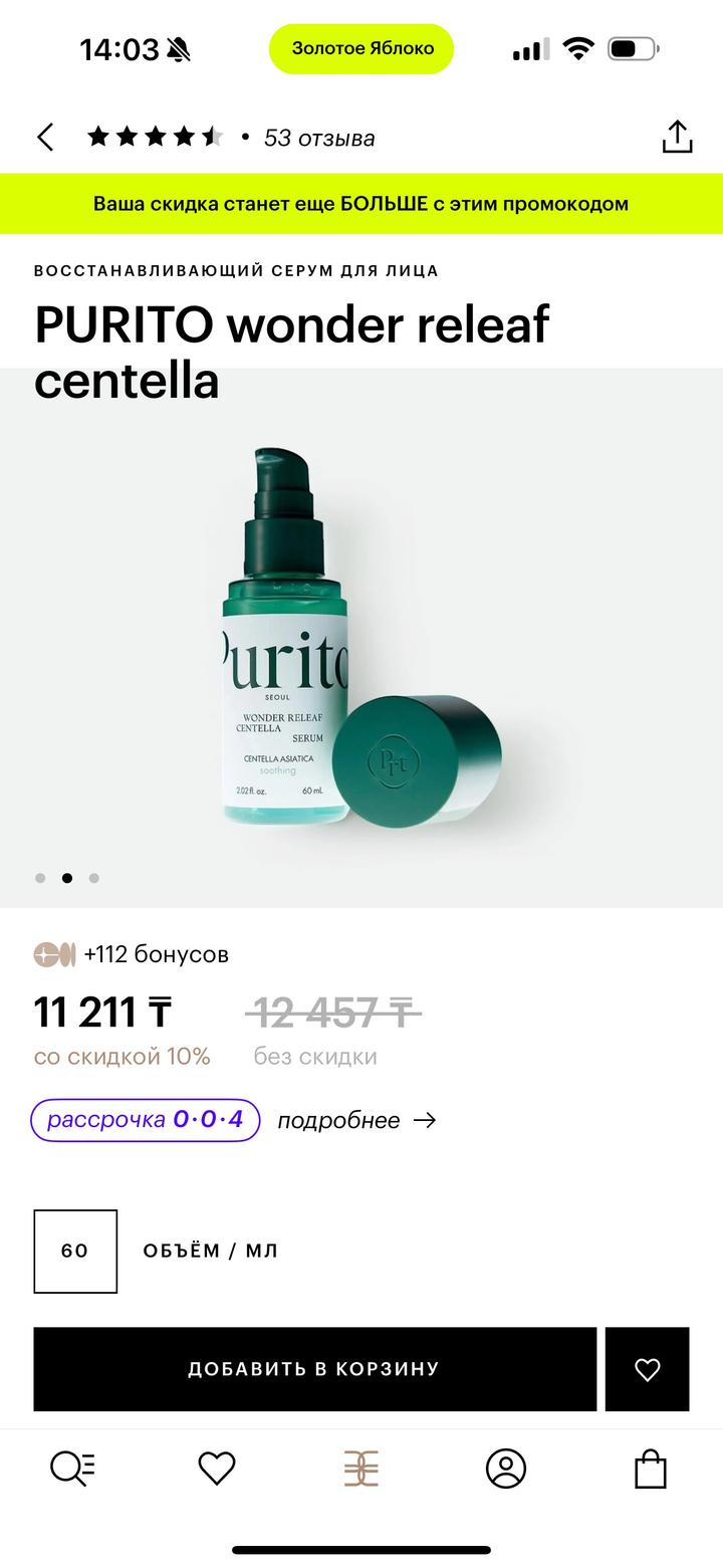 Объем ~ половина Не поняла эффект на своей коже Подлинный 💯 Приятная легкая быстро впитывается успокаивает красноту и раздражение Артикул: 433897